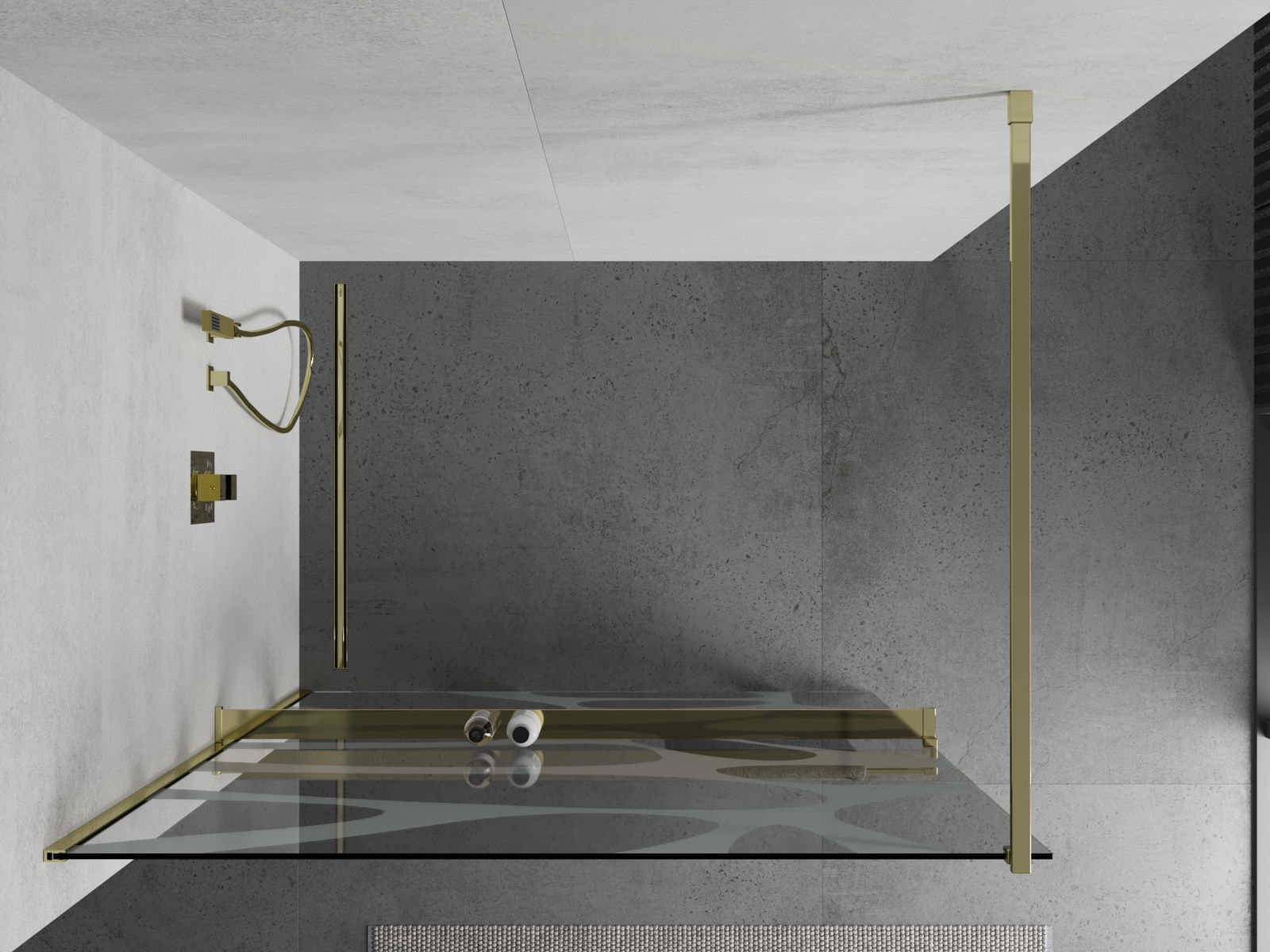 Mexen Kioto+ paroi de douche avec étagère Walk-in 80 x 200 cm, vague blanche, or - 800-080-121-50-97