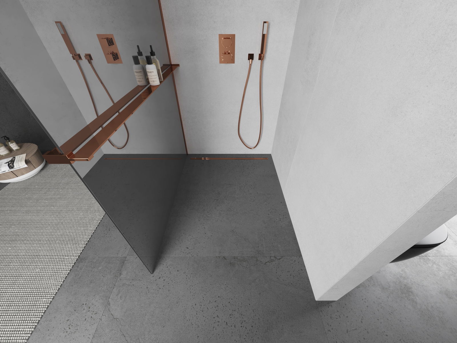 Mexen Kioto+ paroi de douche avec tablette Walk-in 110 x 200 cm, miroir, or rose - 800-110-121-60-50