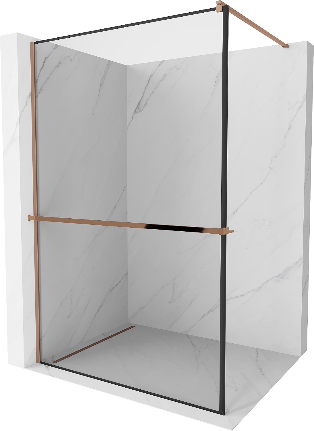 Mexen Kioto+ paroi de douche avec étagère Walk-in 100 x 200 cm, cadre noir, or rose - 800-100-121-60-70