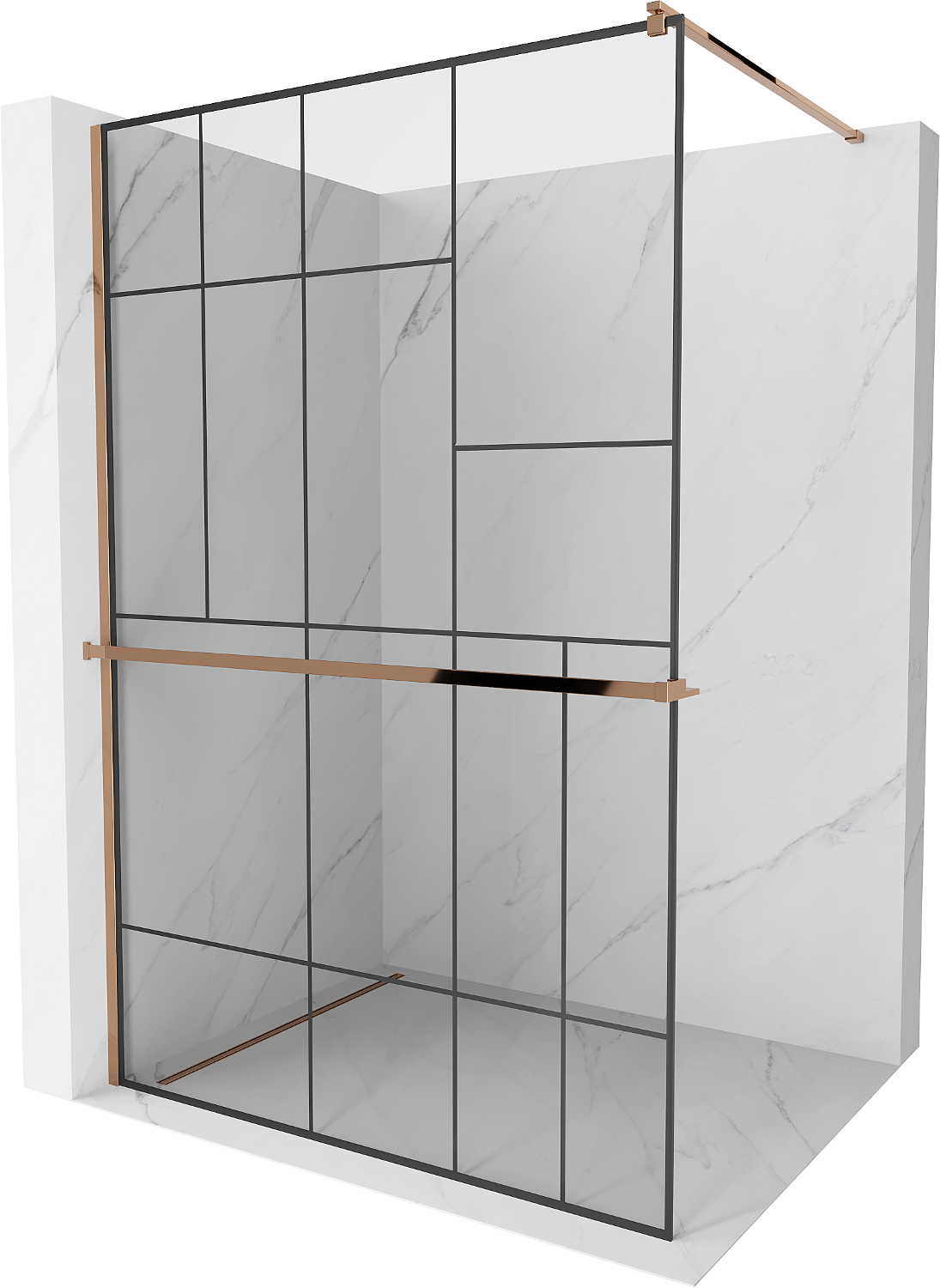Paroi de douche avec étagère Mexen Kioto+ Walk-in 80 x 200 cm, motif noir, or rose - 800-080-121-60-78