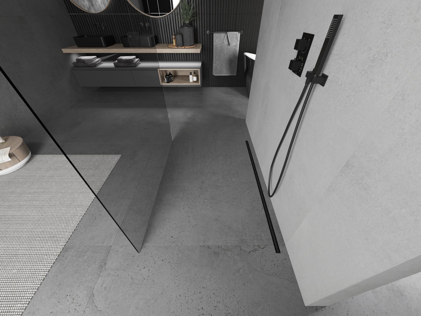 Mexen Kioto paroi de douche autoportante 150 x 200 cm, transparente 8 mm, noire - 800-150-002-70-00