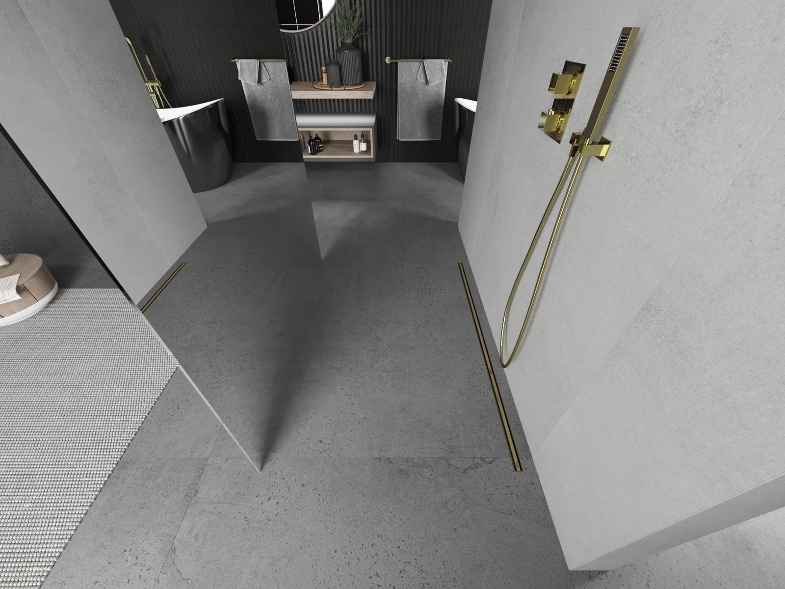 Mexen Kioto paroi de douche autoportante 100 x 200 cm, miroir 8 mm, or - 800-100-002-50-50