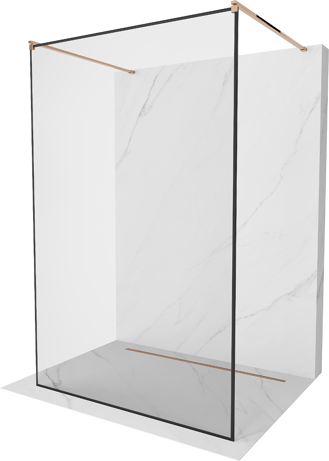 Mexen Kioto paroi de douche autoportante 100 x 200 cm, cadre noir 8 mm, or rose - 800-100-002-60-70