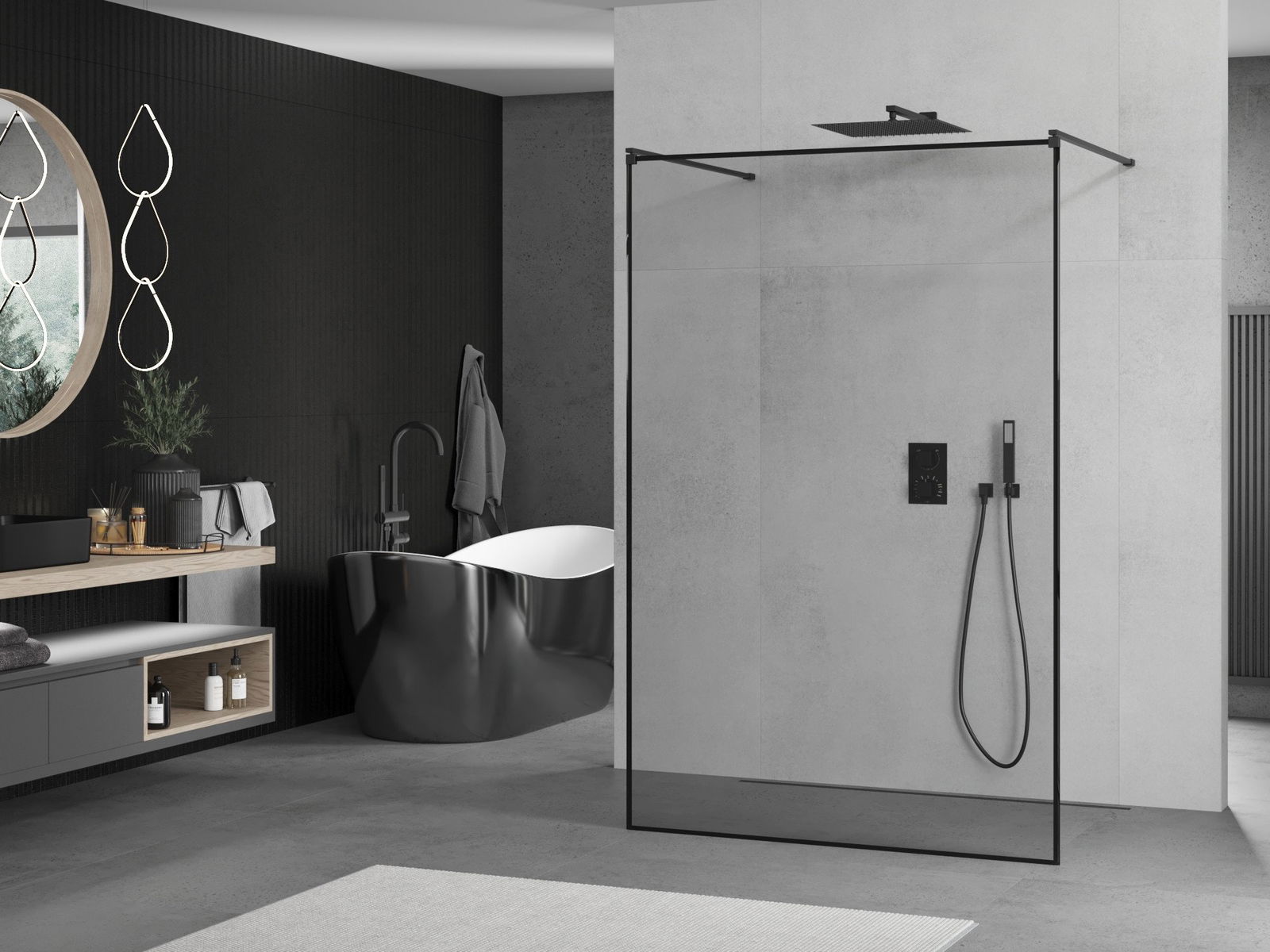 Mexen Kioto paroi de douche autoportante 140 x 200 cm, cadre noir 8 mm, noir - 800-140-002-70-70