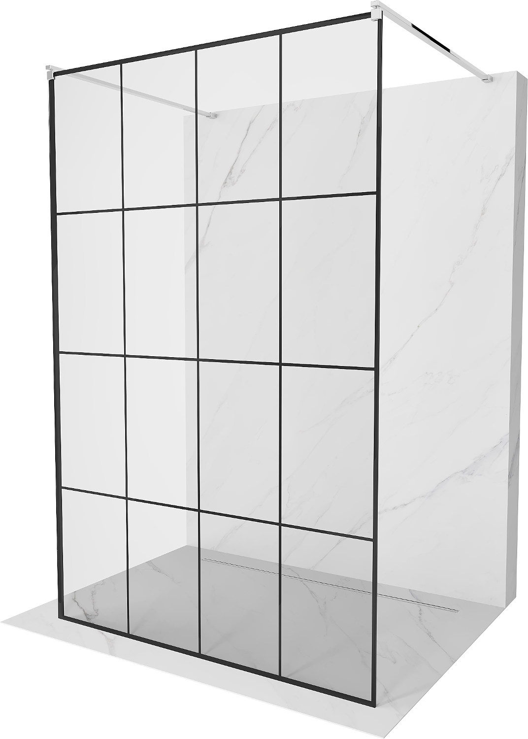 Paroi de douche autoportante Mexen Kioto 140 x 200 cm, grille noire 8 mm, chrome - 800-140-002-01-77