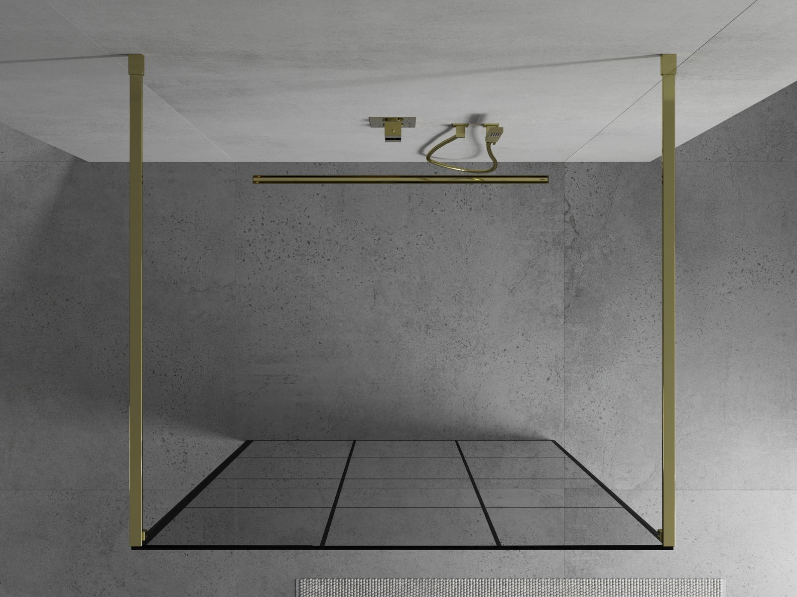 Mexen Kioto paroi de douche autoportante 110 x 200 cm, grille noire 8 mm, dorée - 800-110-002-50-77