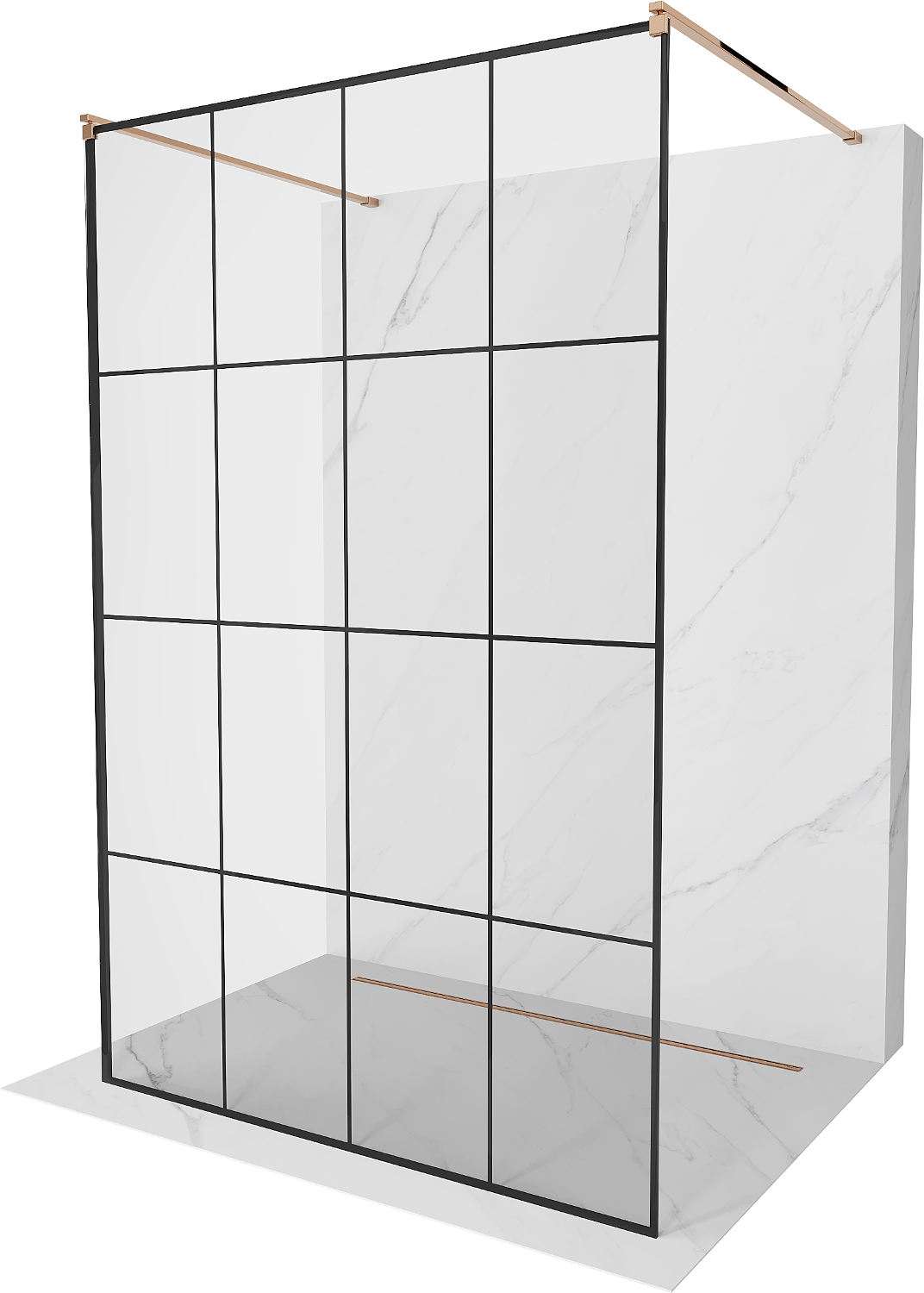 Mexen Kioto paroi de douche autoportante 140 x 200 cm, grille noire 8 mm, or rose - 800-140-002-60-77