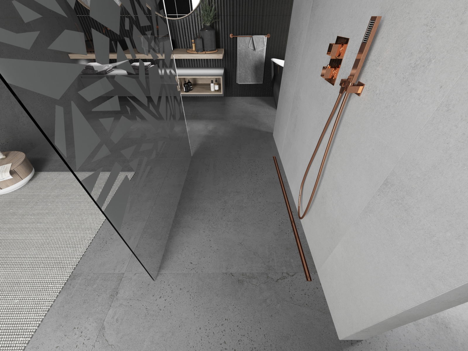 Mexen Kioto paroi de douche autoportante 130 x 200 cm, motif blanc 8 mm, or rose - 800-130-002-60-85