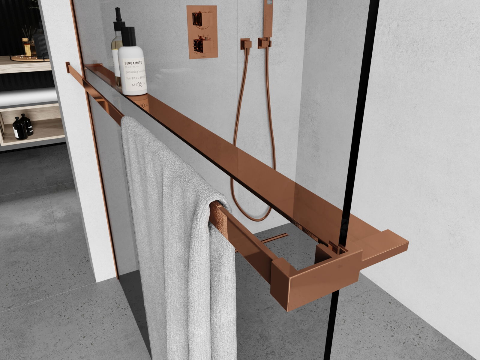 Mexen étagère pour paroi de douche avec barre pour serviettes, or rose - 800-02-60