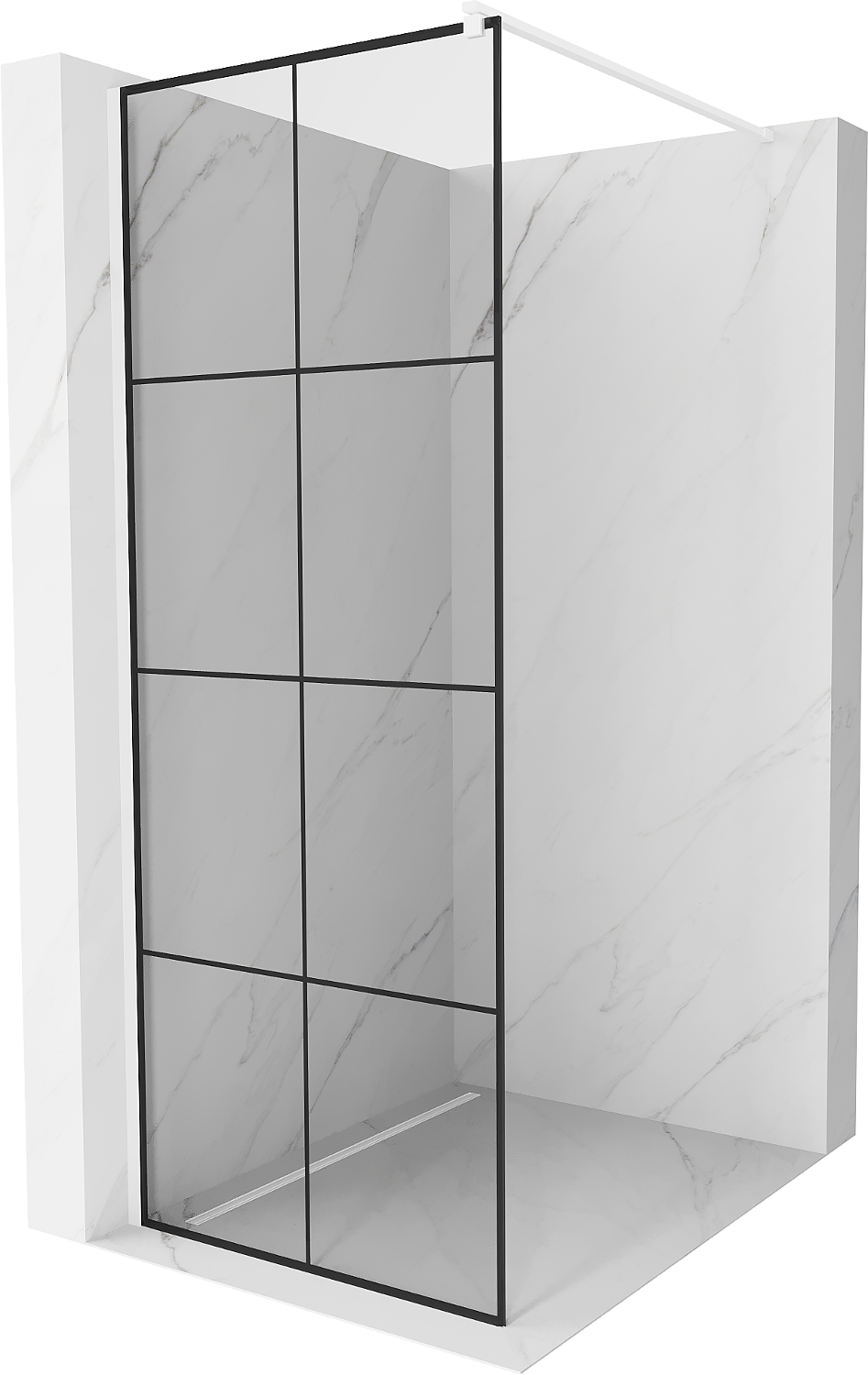Mexen Kioto paroi de douche Walk-in 70 x 200 cm, grille noire 8 mm, blanche - 800-070-101-20-77