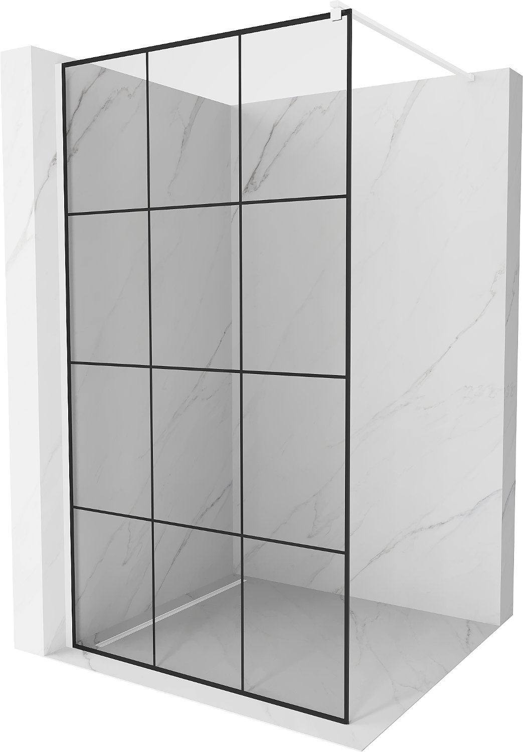 Mexen Kioto paroi de douche Walk-in 110 x 200 cm, grille noire 8 mm, blanche - 800-110-101-20-77