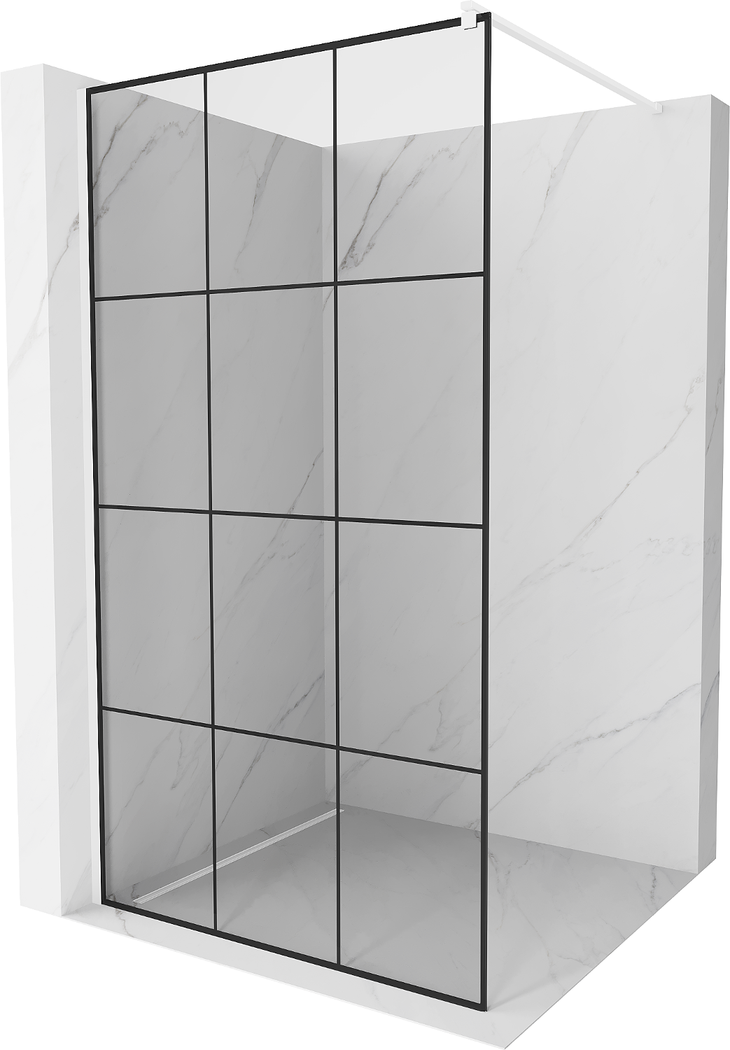 Mexen Kioto paroi de douche Walk-in 120 x 200 cm, grille noire 8 mm, blanche - 800-120-101-20-77
