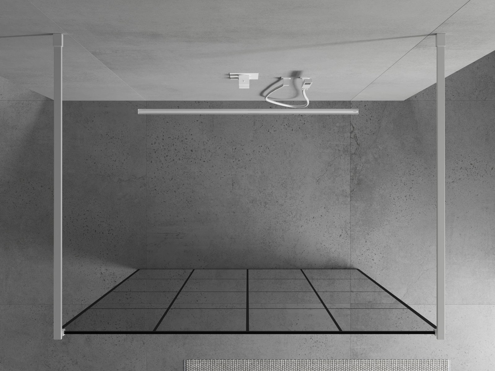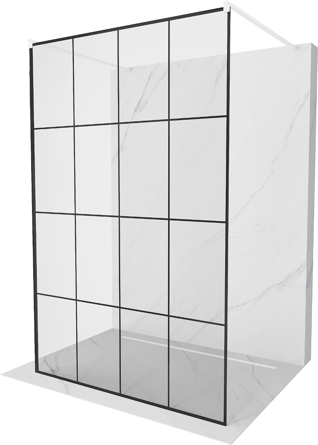 Mexen Kioto paroi de douche autoportante 130 x 200 cm, grille noire 8 mm, blanc - 800-130-002-20-77