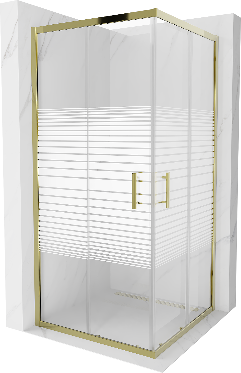 Mexen Rio cabine de douche carrée 90 x 90 cm, bandes blanches, dorée - 860-090-090-50-20