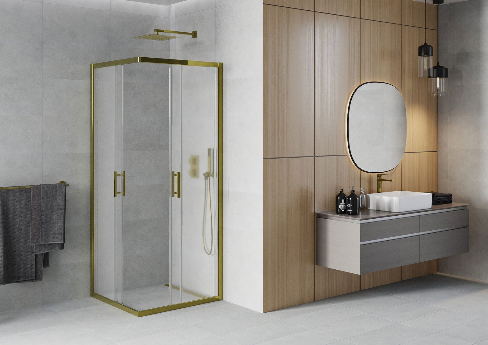 Mexen Rio cabine de douche carrée 80 x 80 cm, givre, dorée - 860-080-080-50-30
