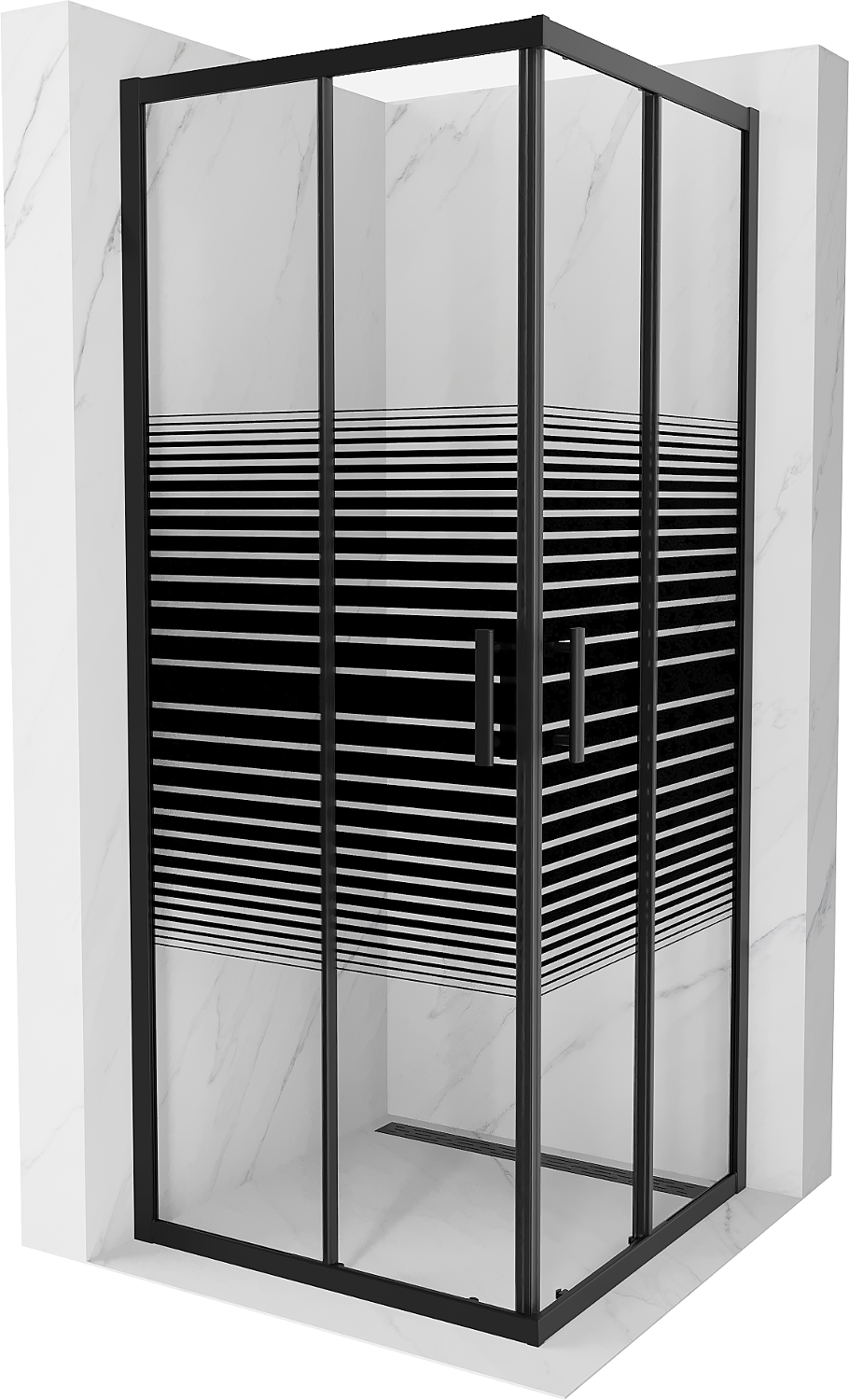 Mexen Rio cabine de douche carrée 80 x 80 cm, bandes noires, noire - 860-080-080-70-20