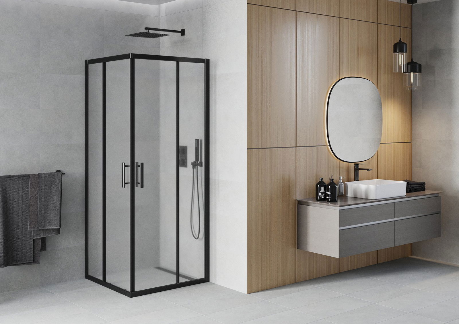 Les portes coulissantes se déplacent sur des rails spéciaux et ne nécessitent pas d'espace supplémentaire pour s'ouvrir. Elles conviennent donc aux petites salles de bains. Grâce à leurs doubles roulettes en plastique résistant, leur mouvement est fluide.