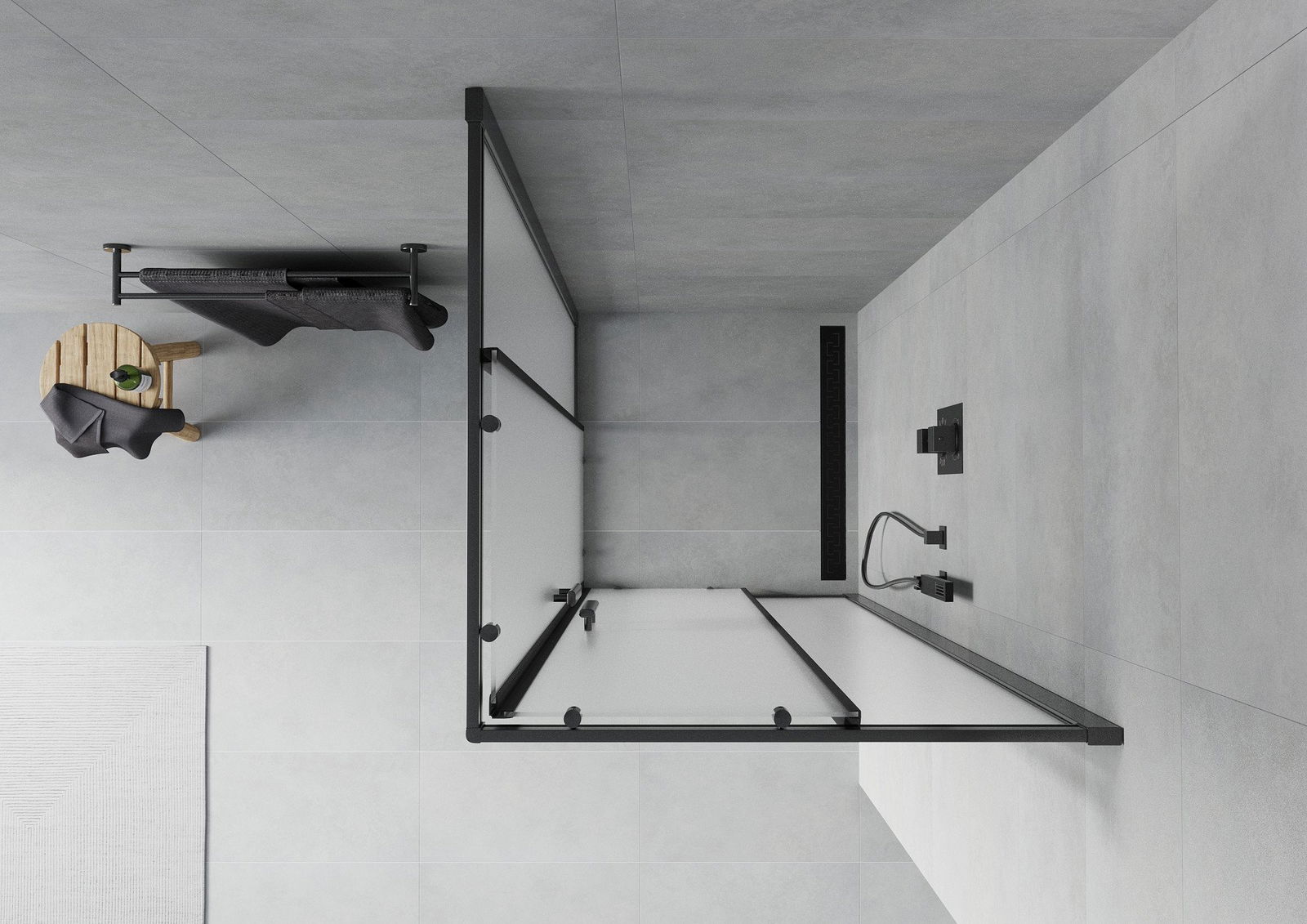 La poignée pratique et confortable est fabriquée en métal durable et résistant. Sa forme élégante, associée à une finition assortie à la couleur des profilés, confère à l'ensemble un style moderne et élégant, soulignant l'esthétique de chaque salle de bains.