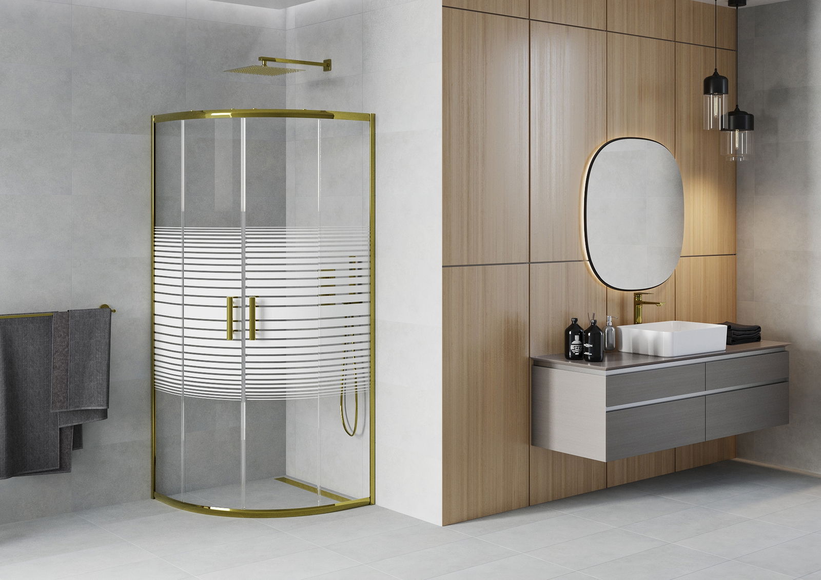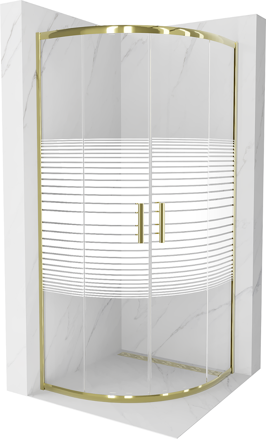 Mexen Rio cabine de douche semi-circulaire 90 x 90 cm, bandes blanches, dorée - 863-090-090-50-20