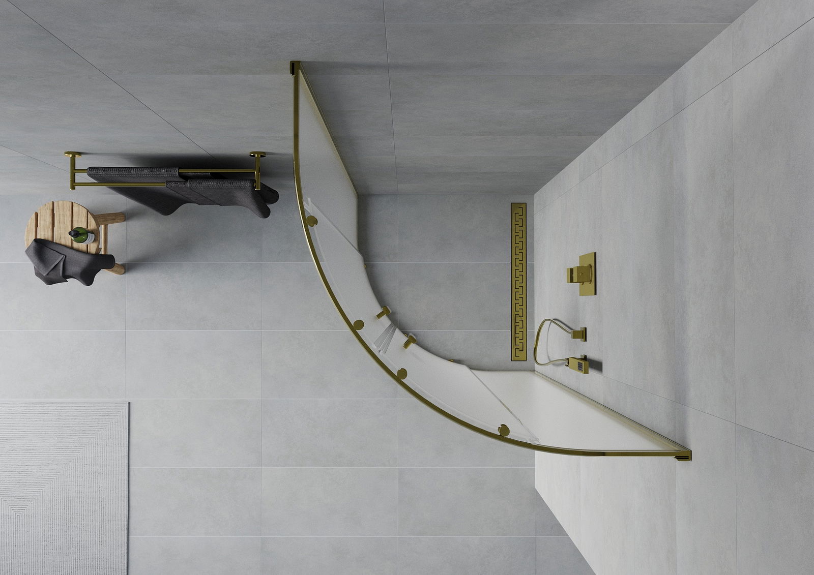 Mexen Rio cabine de douche semi-circulaire 70 x 70 cm, givrée, dorée - 863-070-070-50-30