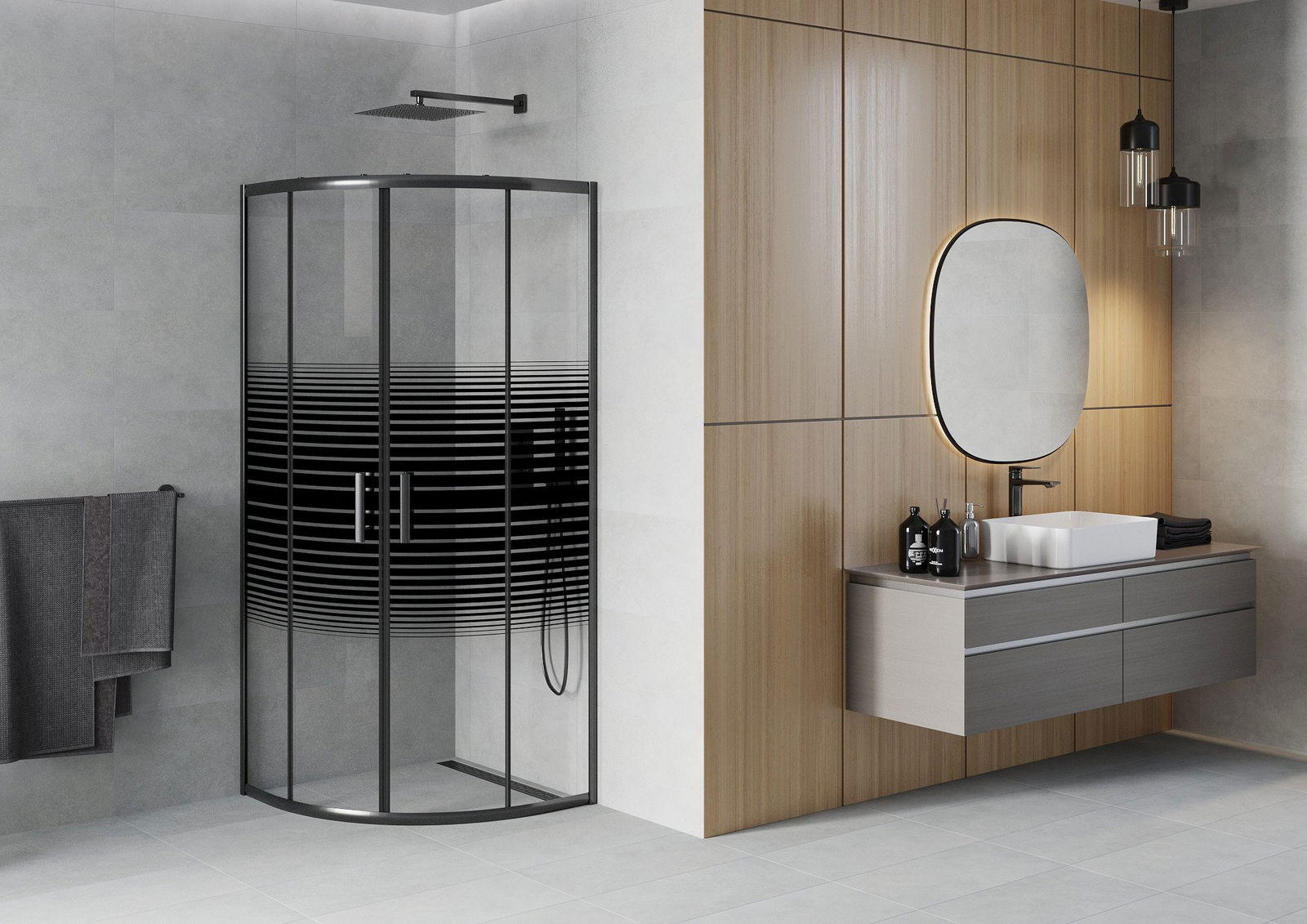Mexen Rio cabine de douche semi-circulaire 70 x 70 cm, bandes noires, noir - 863-070-070-70-20