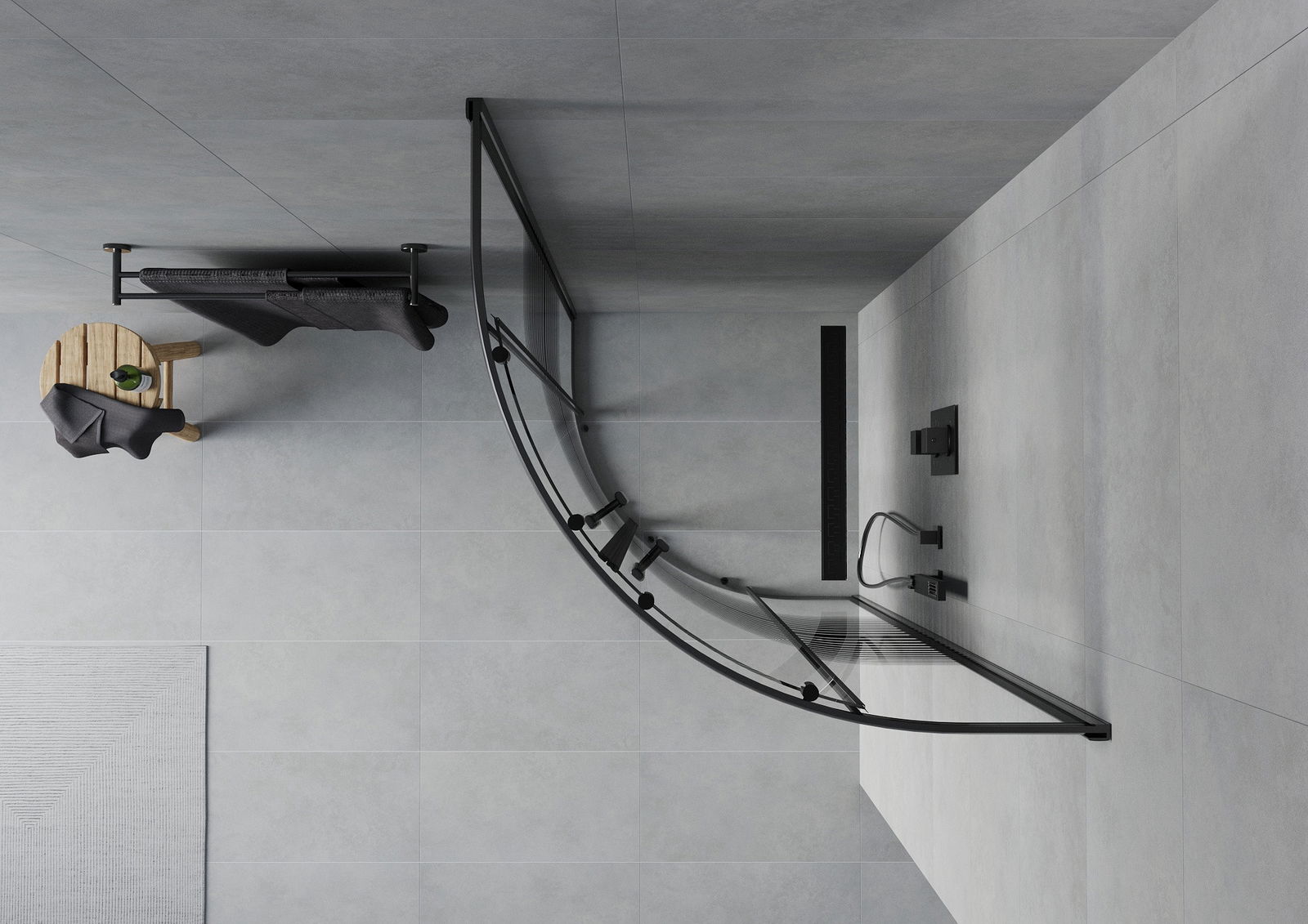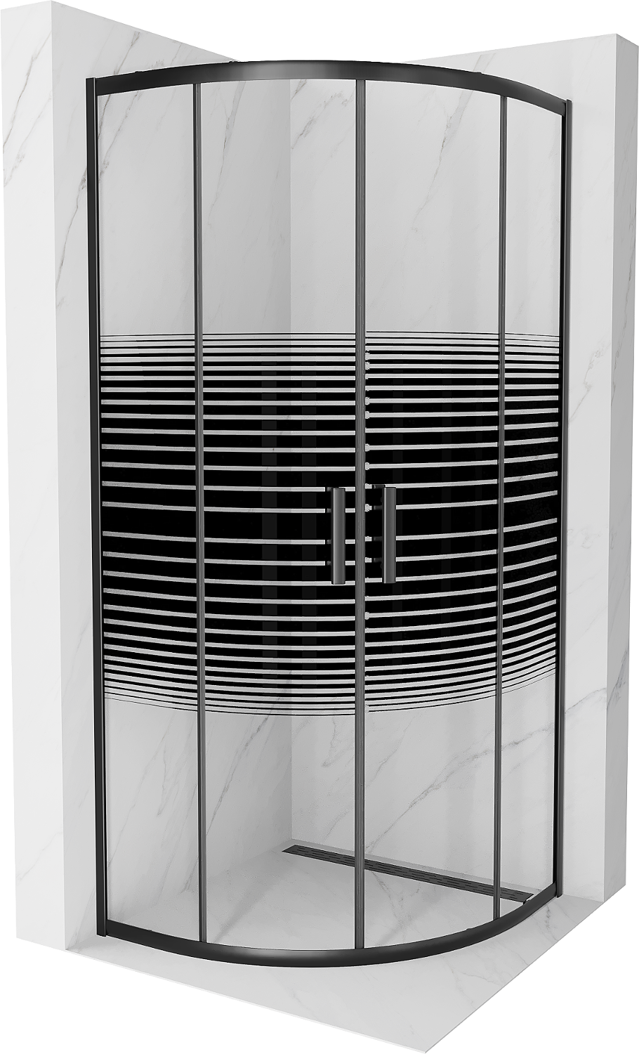 Mexen Rio cabine de douche semi-circulaire 80 x 80 cm, bandes noires, noire - 863-080-080-70-20