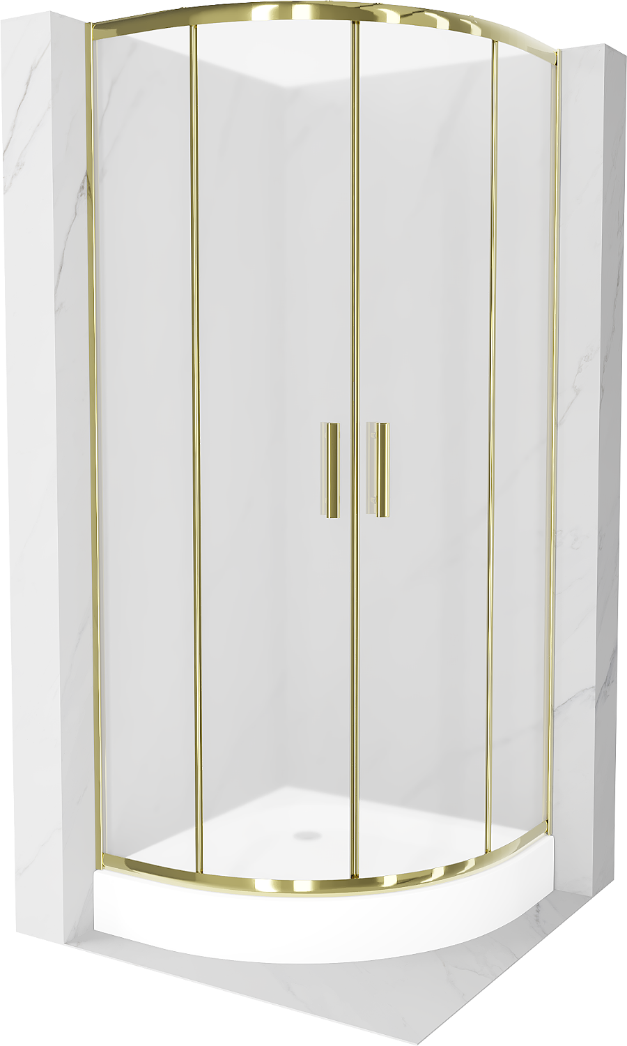 Mexen Rio cabine de douche semi-circulaire 90 x 90 cm, givre, or + receveur Rio, blanc - 863-090-090-50-30-4710