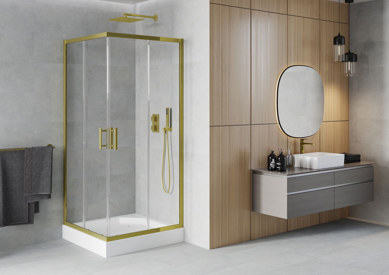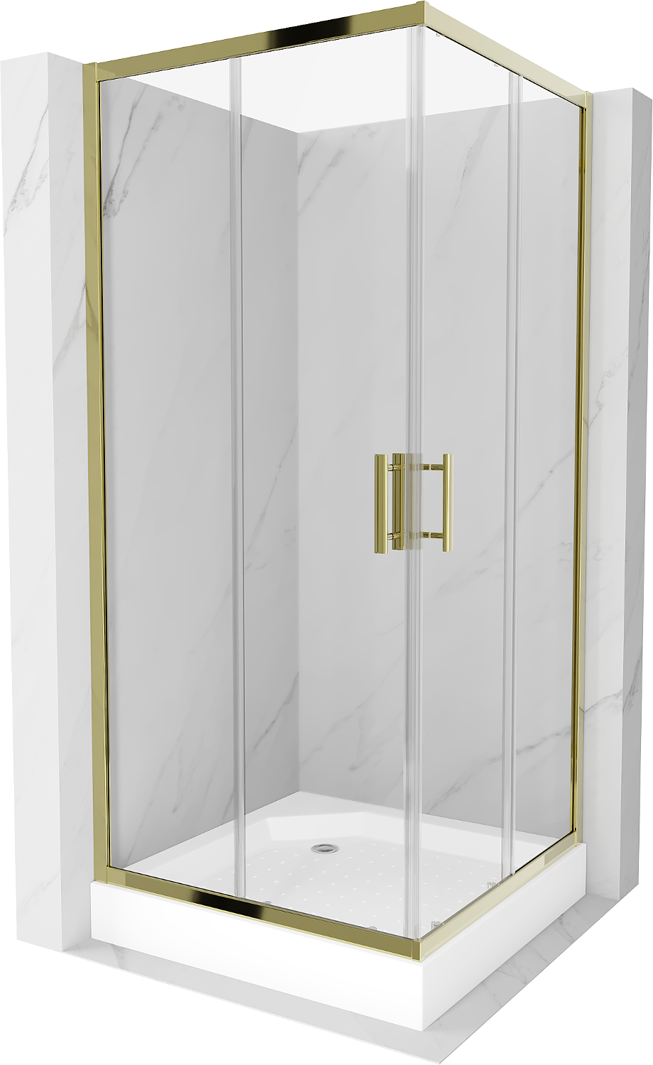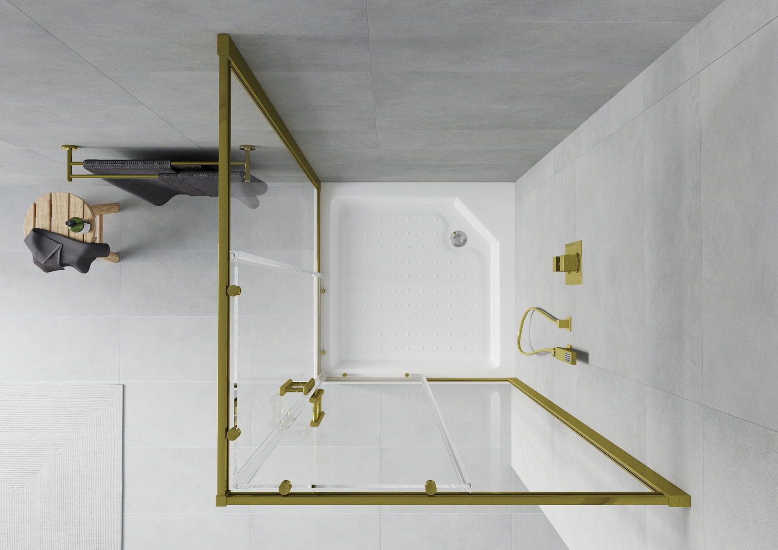 Mexen Rio cabine de douche carrée 90 x 90 cm, transparent, dorée + bac à douche Rio, blanc - 860-090-090-50-00-4510