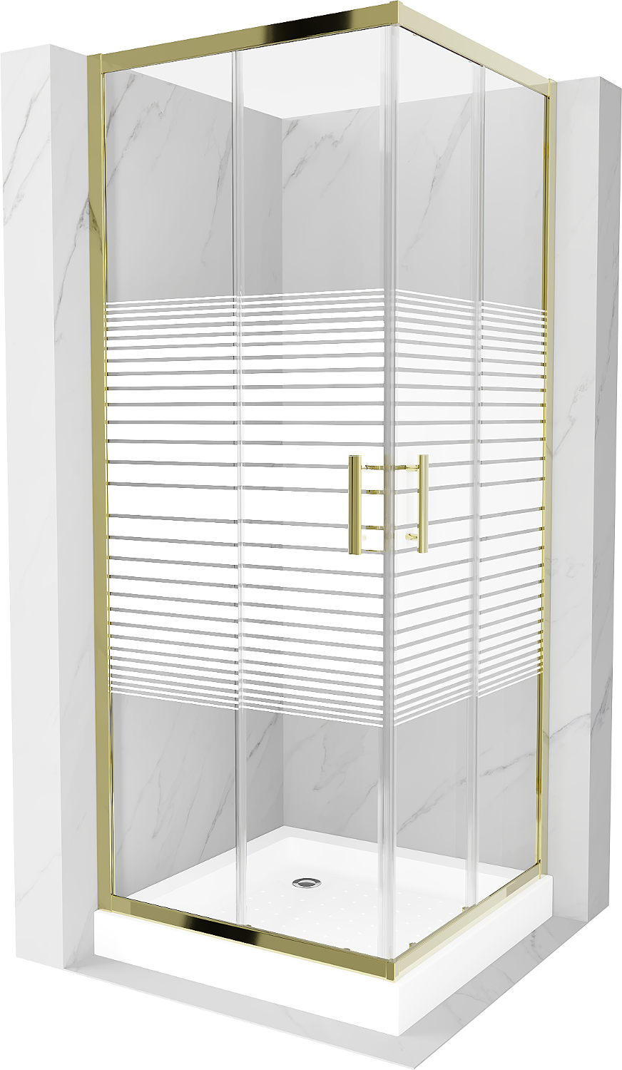 Mexen Rio cabine de douche carrée 80 x 80 cm, bandes blanches, or + receveur, blanc - 860-080-080-50-20-4510
