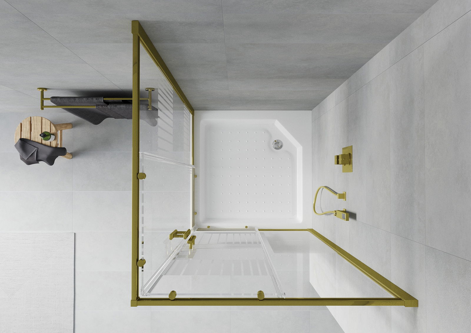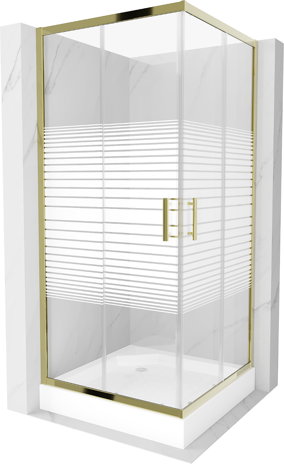 Mexen Rio cabine de douche carrée 90 x 90 cm, bandes blanches, or + receveur Rio, blanc - 860-090-090-50-20-4510