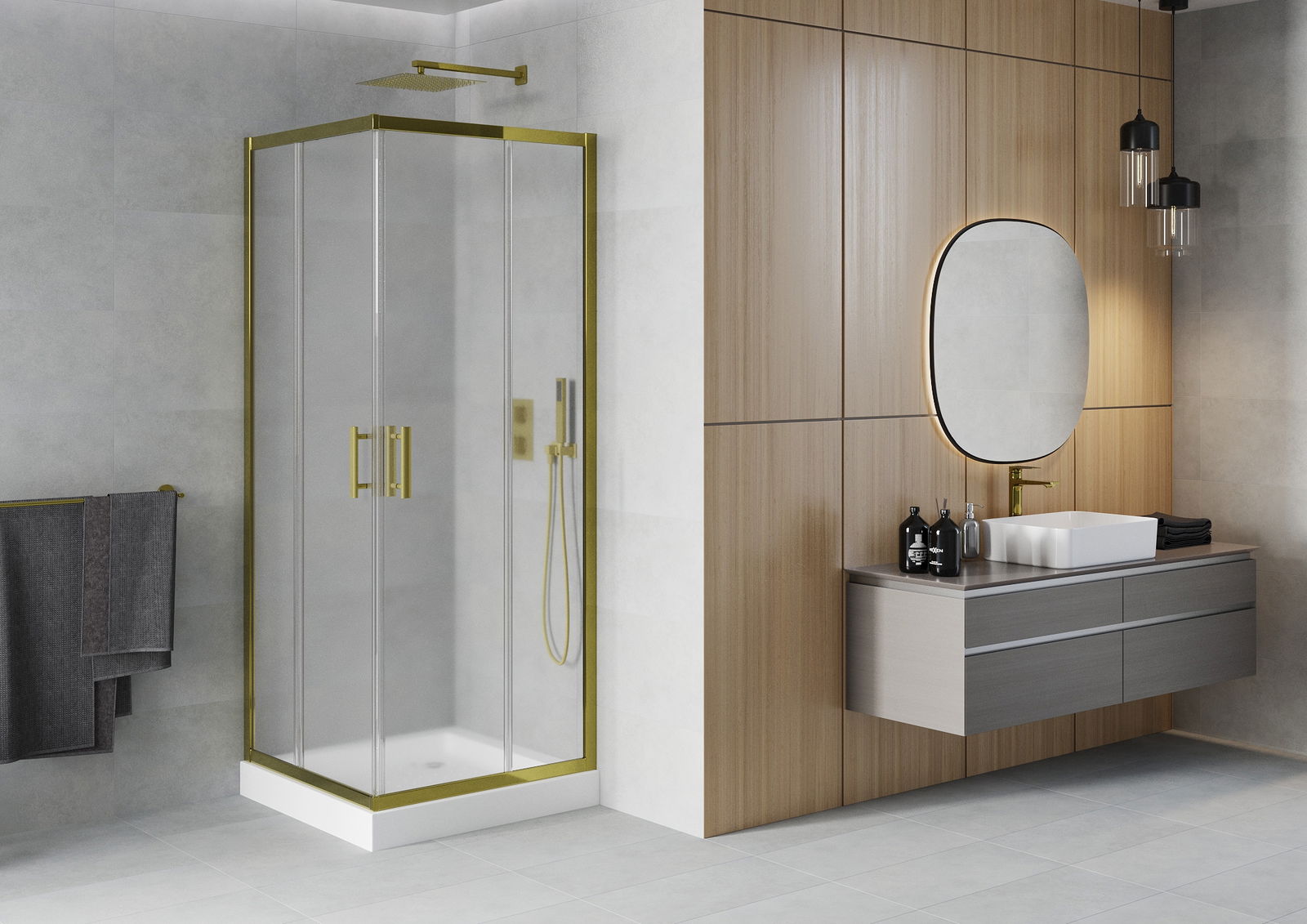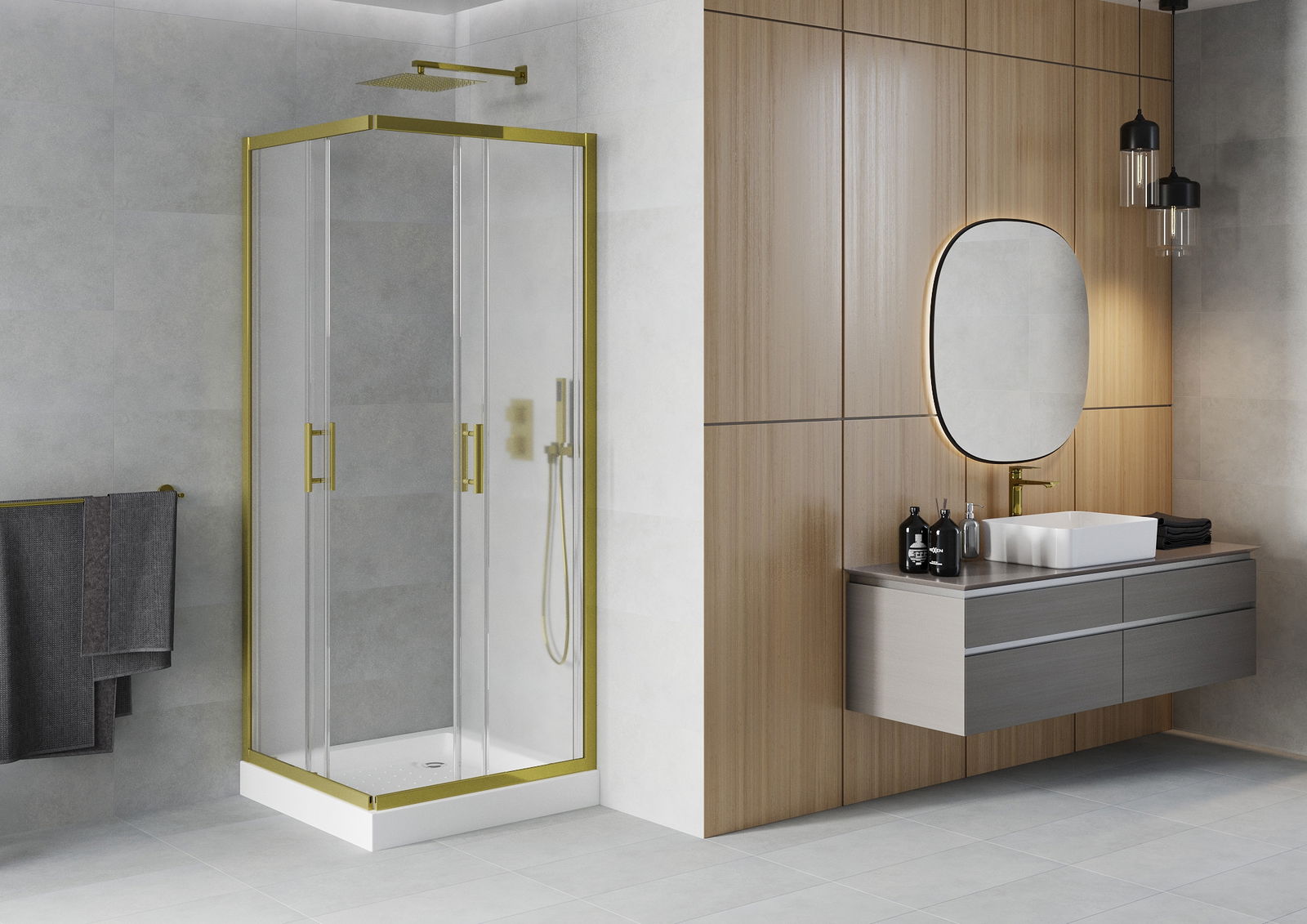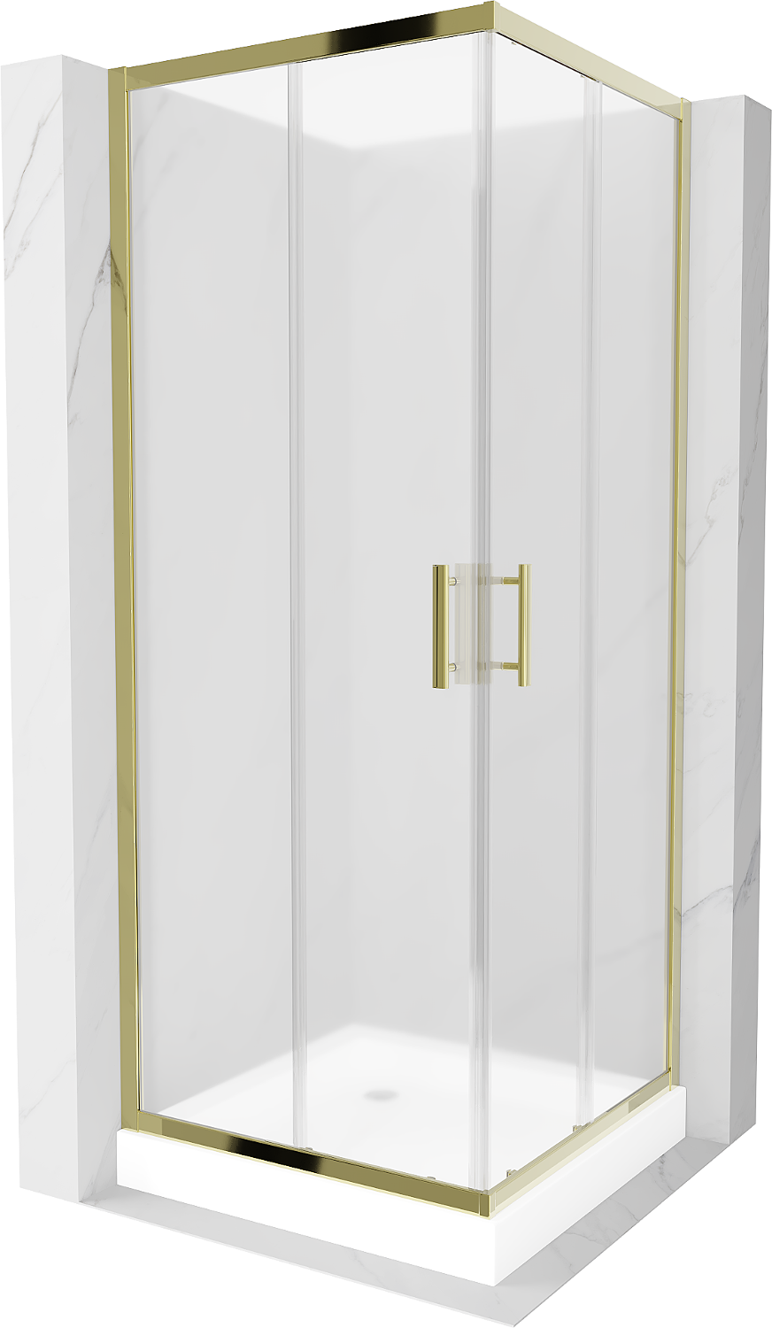 Mexen Rio cabine de douche carrée 80 x 80 cm, verre dépoli, doré + receveur Rio, blanc - 860-080-080-50-30-4510