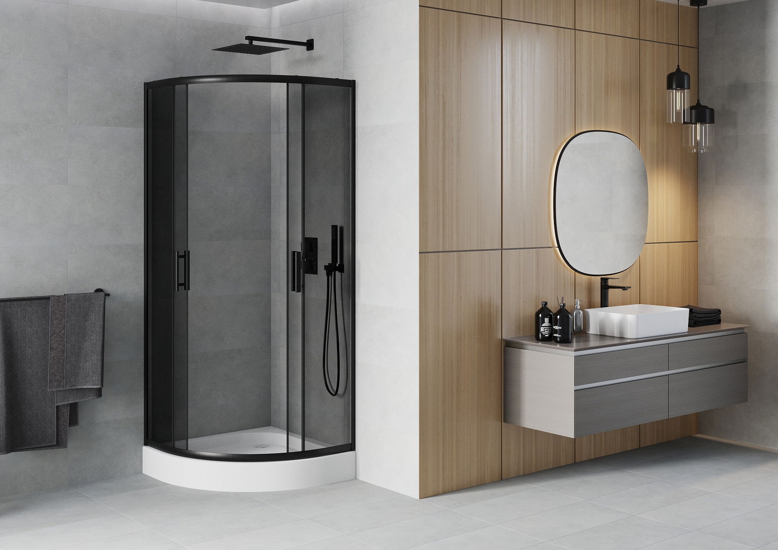 Mexen Rio cabine de douche demi-circulaire 90 x 90 cm, graphite, noire + receveur Rio, blanc - 863-090-090-70-40-4710