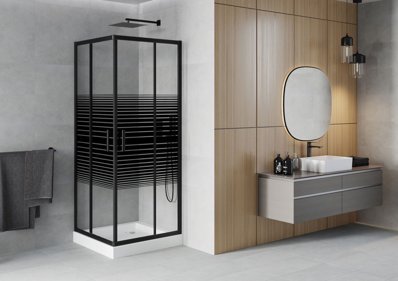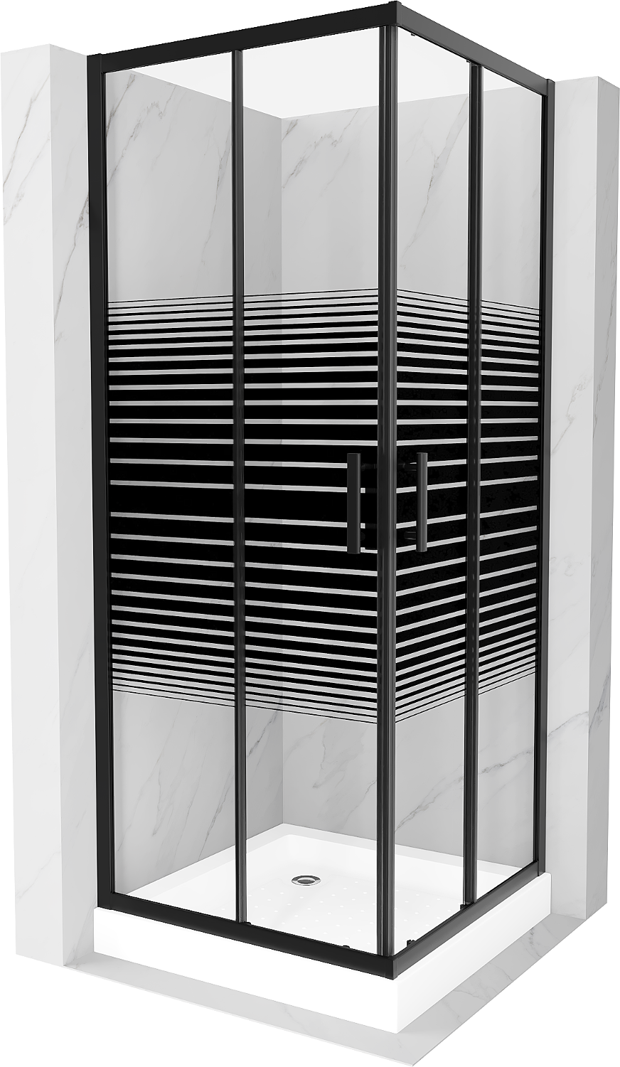Mexen Rio cabine de douche carrée 80 x 80 cm, bandes noires, noire + receveur de douche, blanc - 860-080-080-70-20-4510