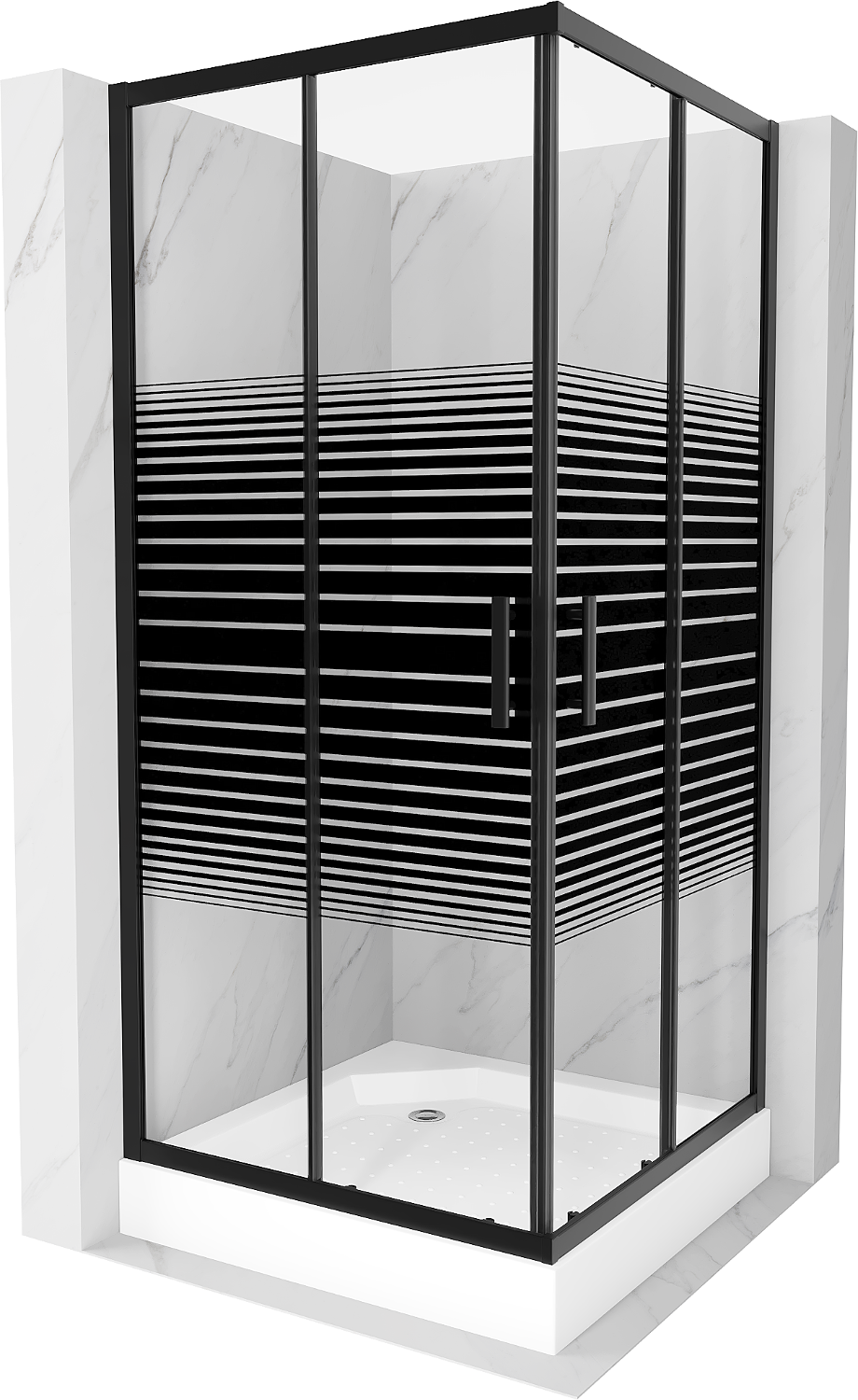 Mexen Rio cabine de douche carrée 90 x 90 cm, bandes noires, noir + receveur Rio, blanc - 860-090-090-70-20-4510