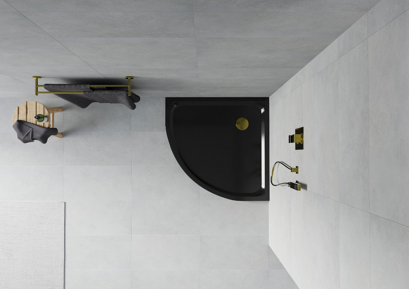 Mexen Flat receveur de douche demi-circulaire slim 100 x 100 cm, noir, siphon doré - 41701010G