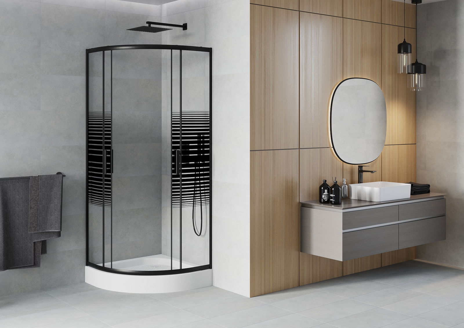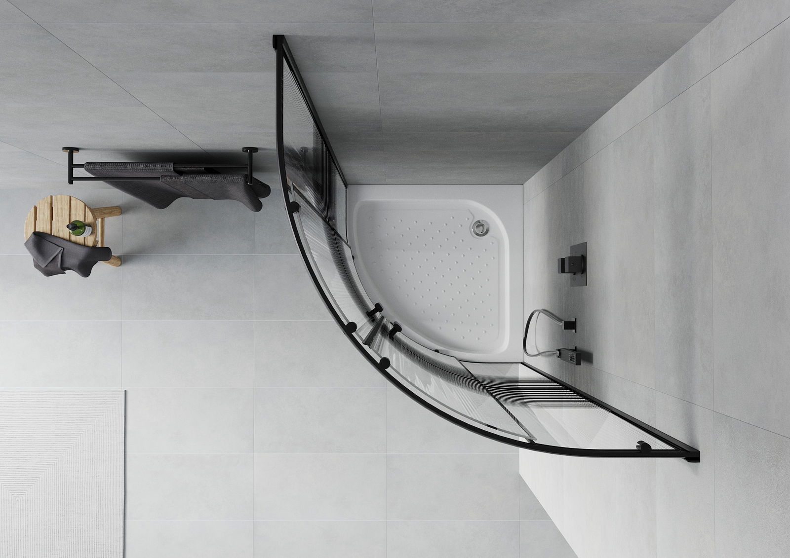 Mexen Rio cabine de douche semi-circulaire 70 x 70 cm, bandes noires, noir + receveur, blanc - 863-070-070-70-20-4710