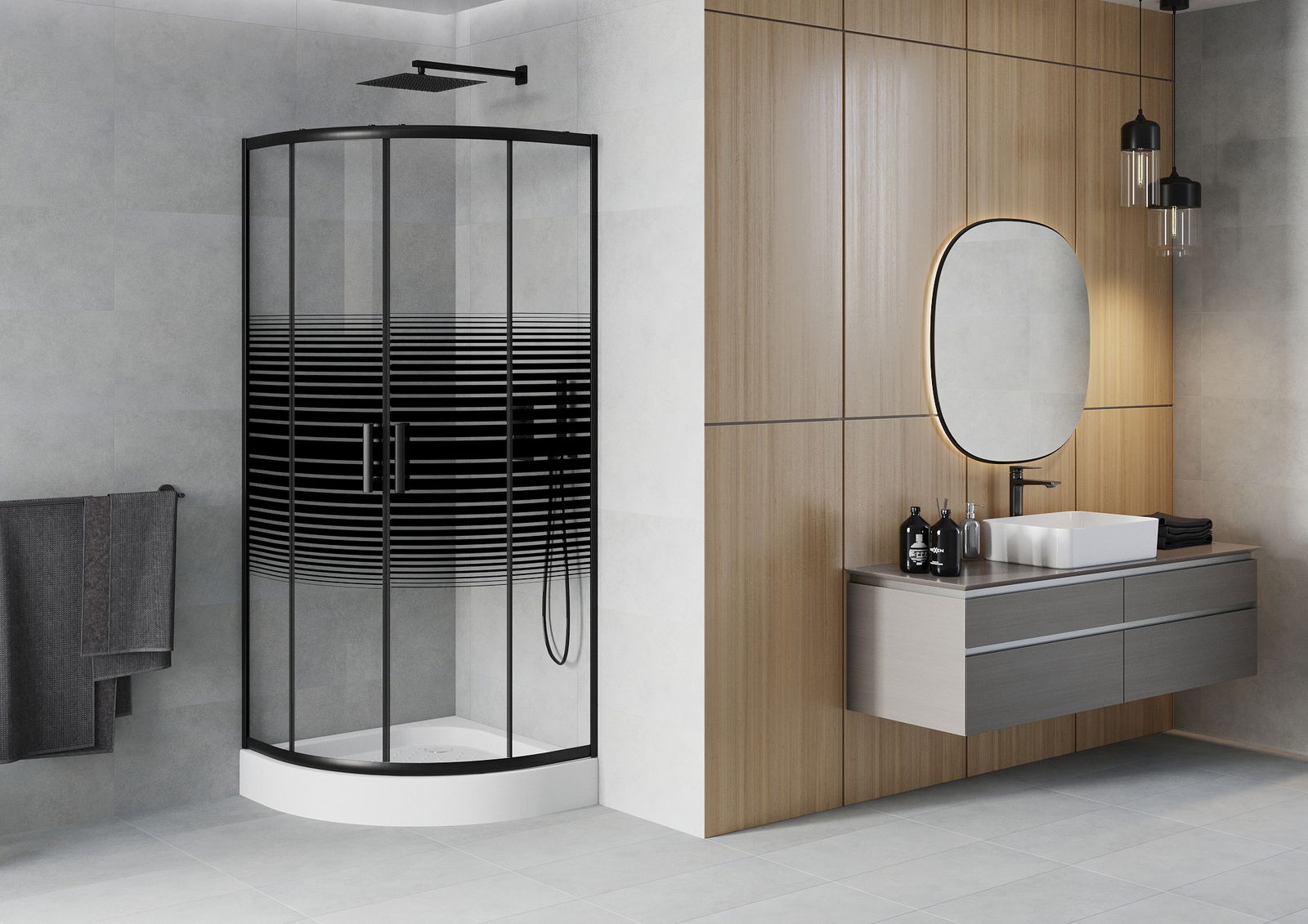 Mexen Rio cabine de douche semi-circulaire 80 x 80 cm, bandes noires, noir + receveur, blanc - 863-080-080-70-20-4710