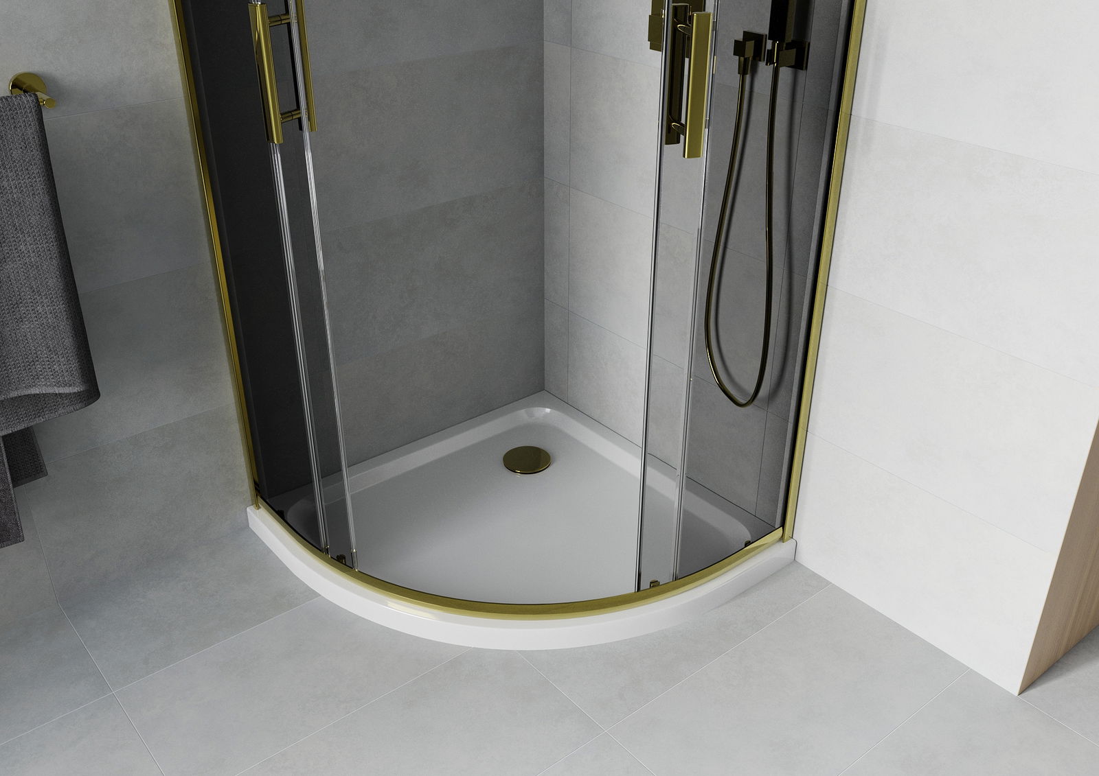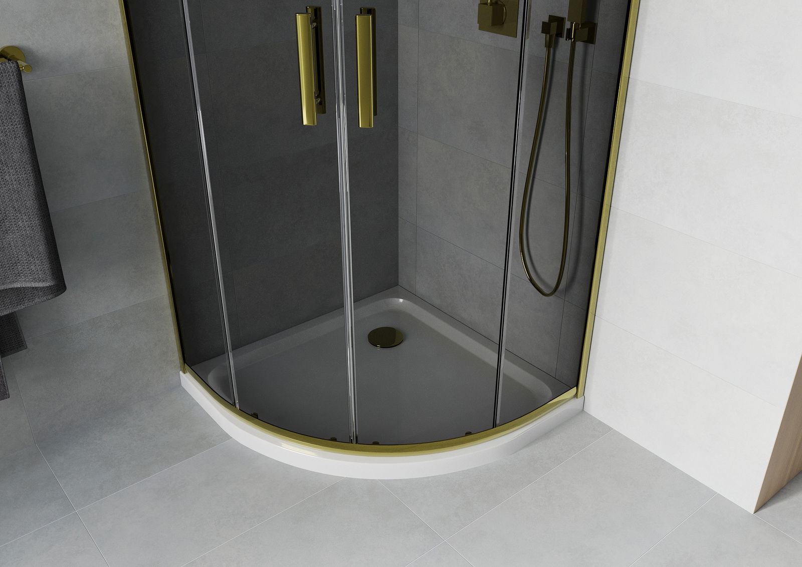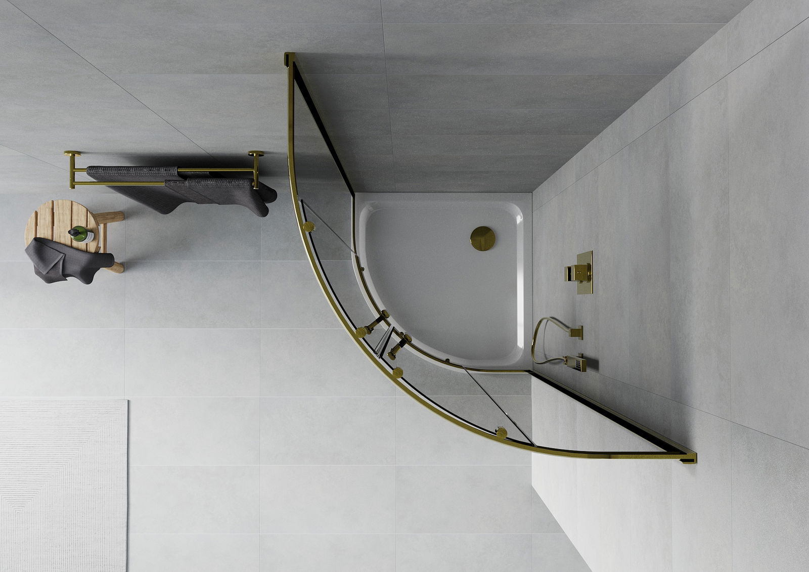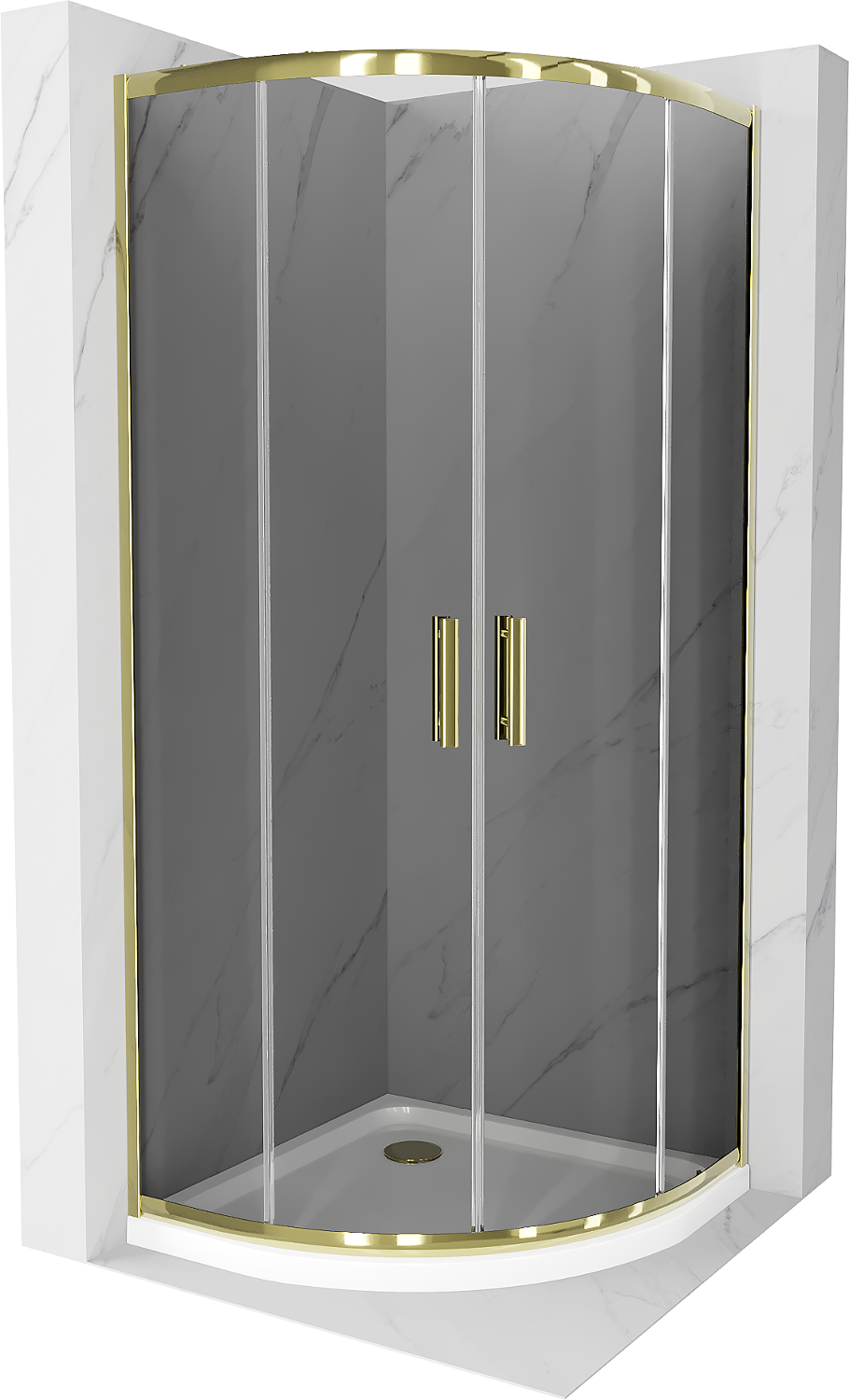 Mexen Rio cabine de douche semi-circulaire 90 x 90 cm, graphite, or + receveur plat, blanc - 863-090-090-50-40-4110G