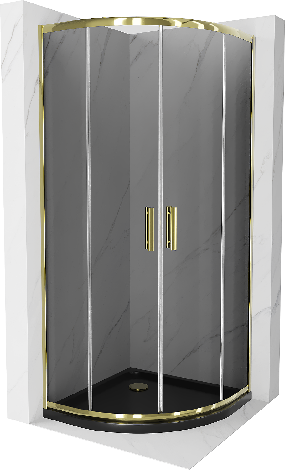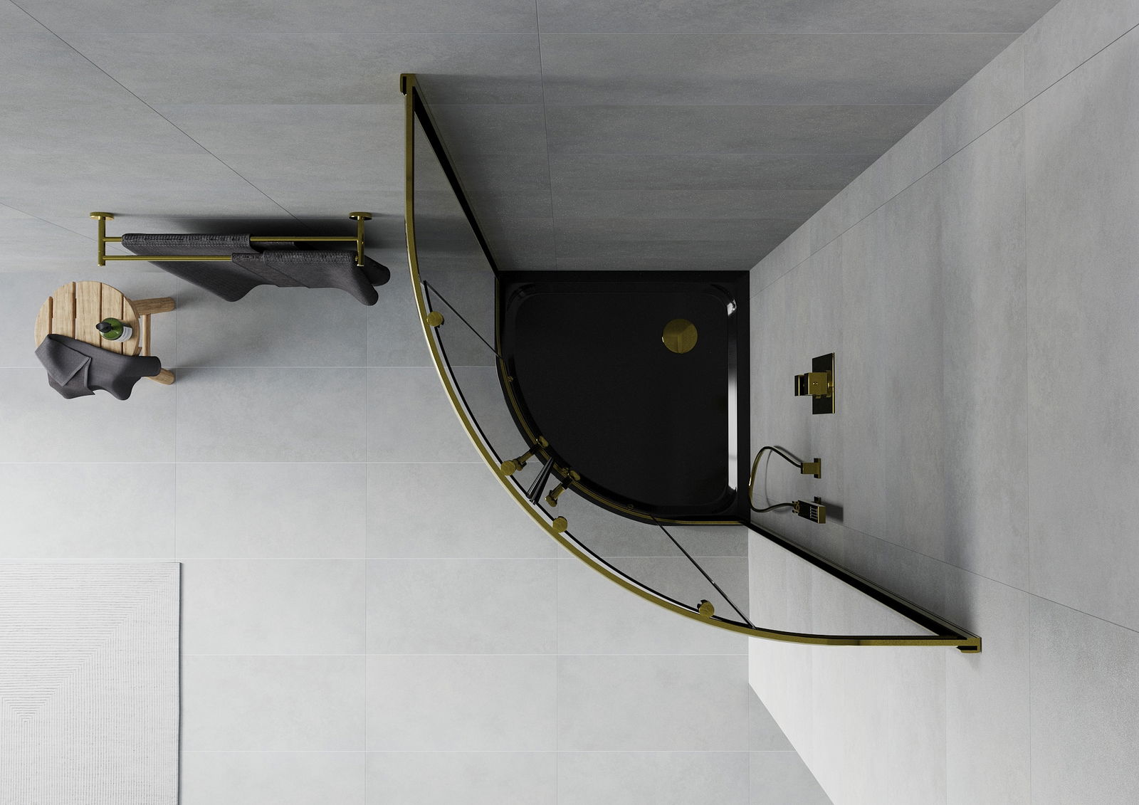 Mexen Rio cabine de douche en quart de cercle 90 x 90 cm, graphite, or + receveur Flat, noir - 863-090-090-50-40-4170G