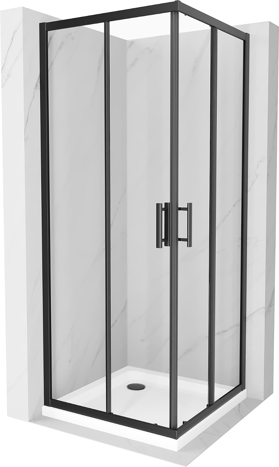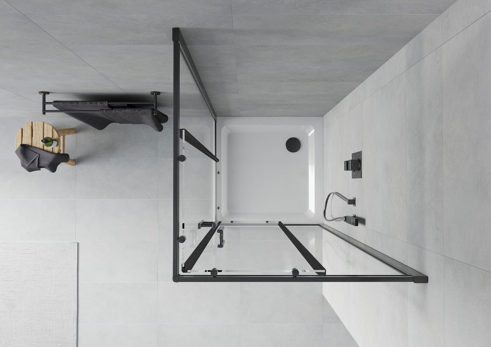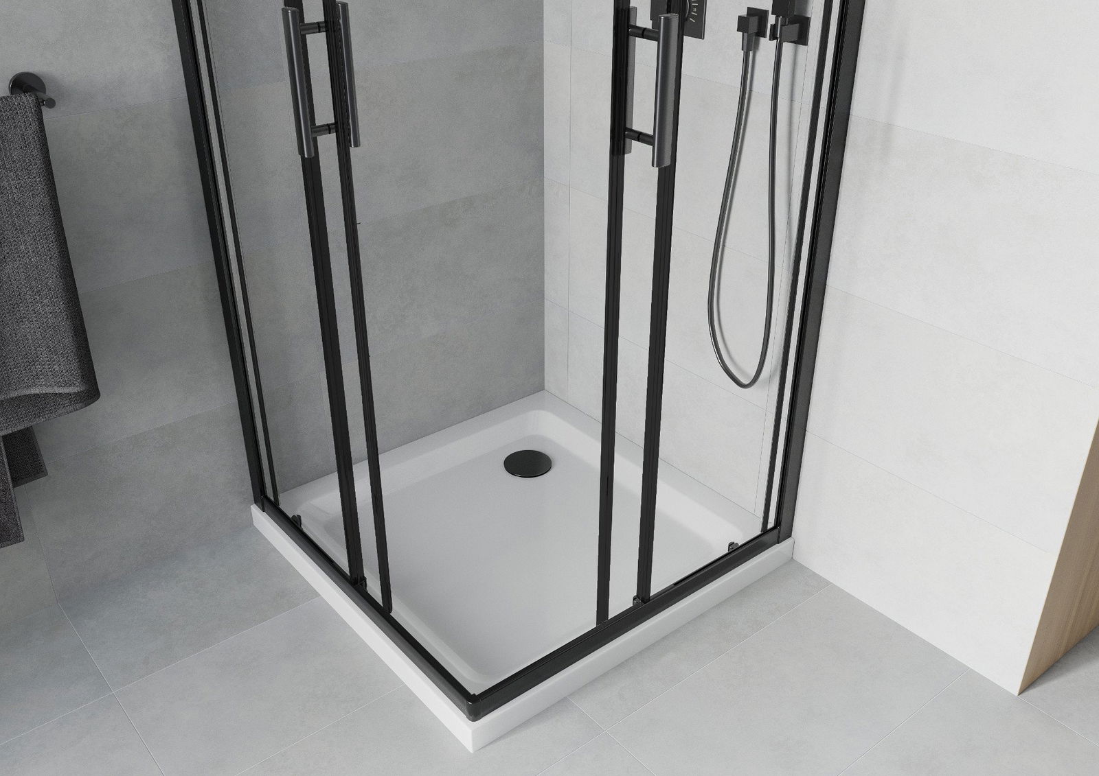 Mexen Rio cabine de douche carrée 80 x 80 cm, transparente, noire + receveur Flat, blanc - 860-080-080-70-00-4010B