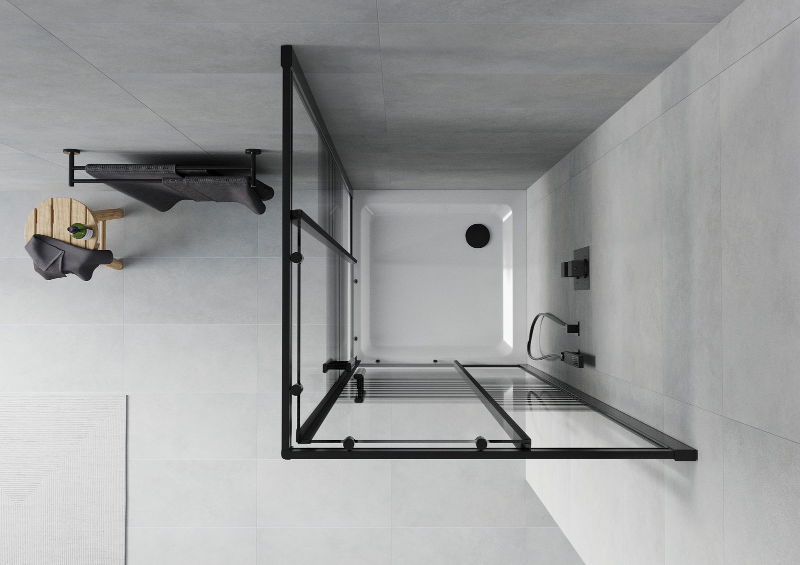 La poignée pratique et confortable est fabriquée en métal durable et résistant. Sa forme à la mode, combinée à une finition assortie à la couleur des profilés, donne à l'ensemble un aspect moderne et stylé, soulignant l'esthétique de chaque salle de bain.