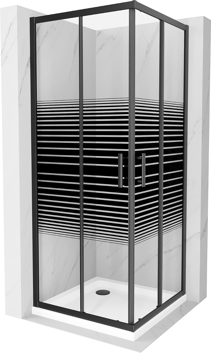 Mexen Rio cabine de douche carrée 90 x 90 cm, bandes noires, noir + receveur plat, blanc - 860-090-090-70-20-4010B