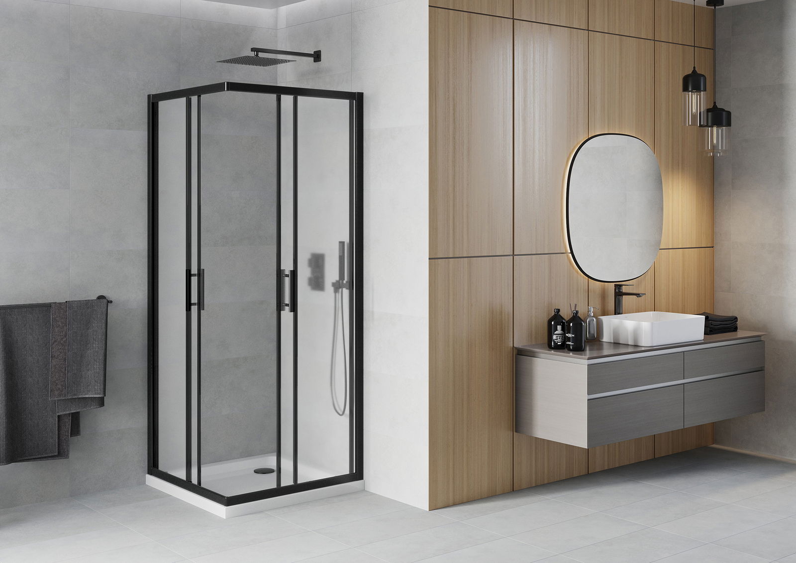 Les portes coulissantes se déplacent sur des rails spéciaux et ne nécessitent pas d'espace supplémentaire pour s'ouvrir. Elles conviennent donc aux petites salles de bains. Grâce à leurs doubles roulettes en plastique résistant, leur mouvement est fluide.