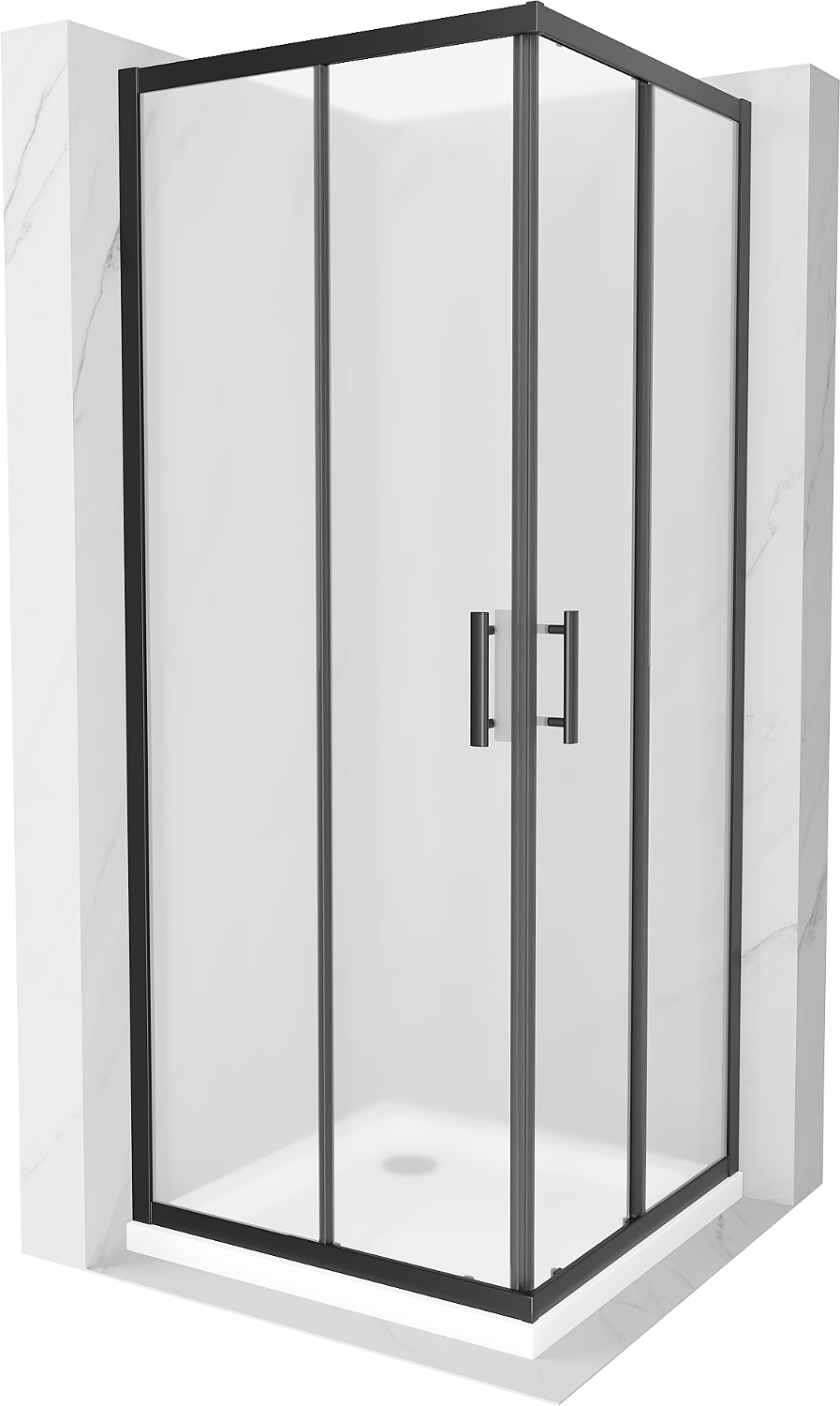 Mexen Rio cabine de douche carrée 90 x 90 cm, givrée, noire + receveur Flat, blanc - 860-090-090-70-30-4010B