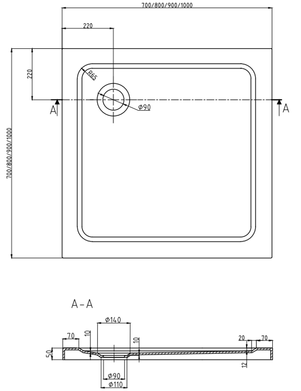 Diamètre de l'évacuation : 90 mm
