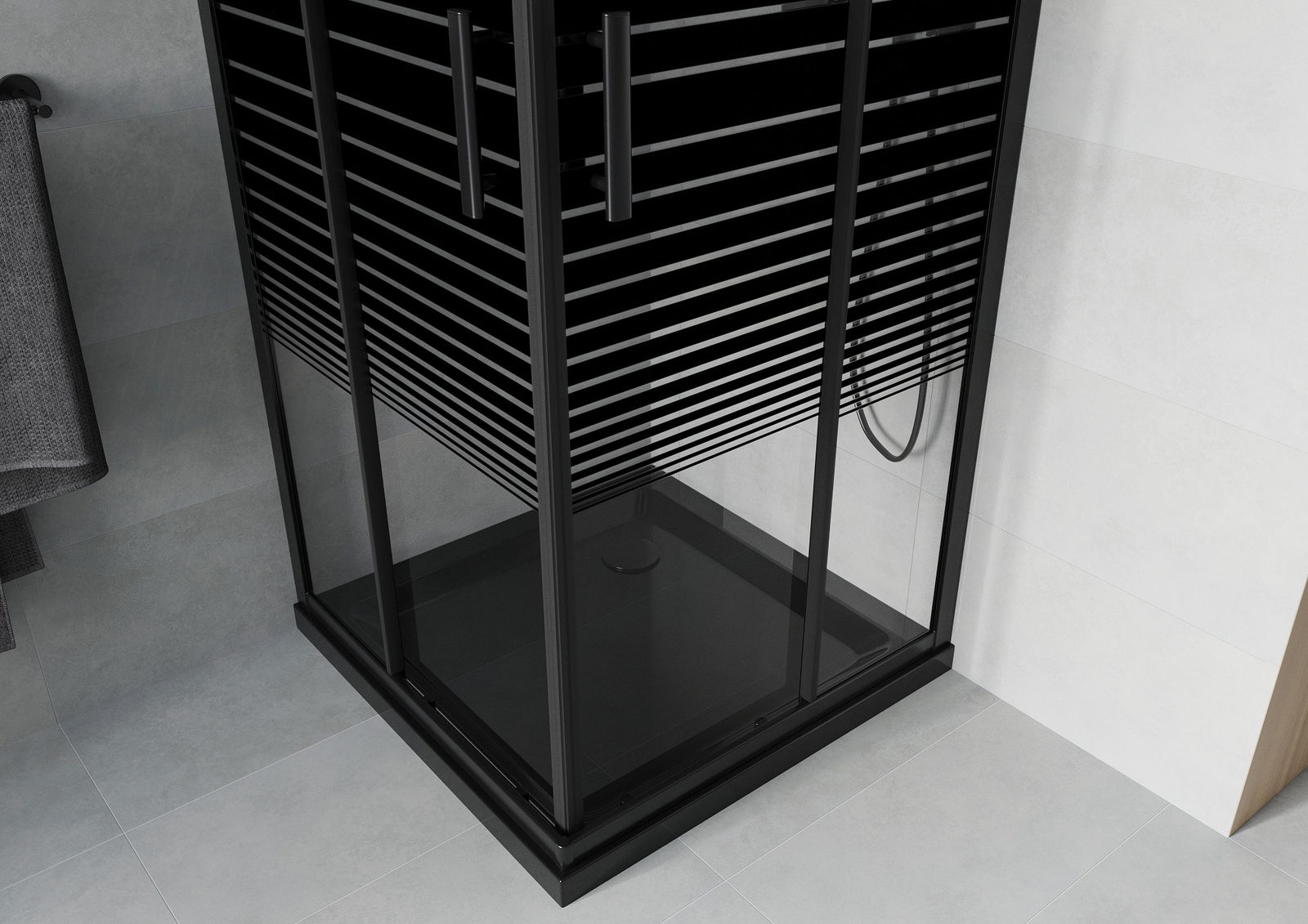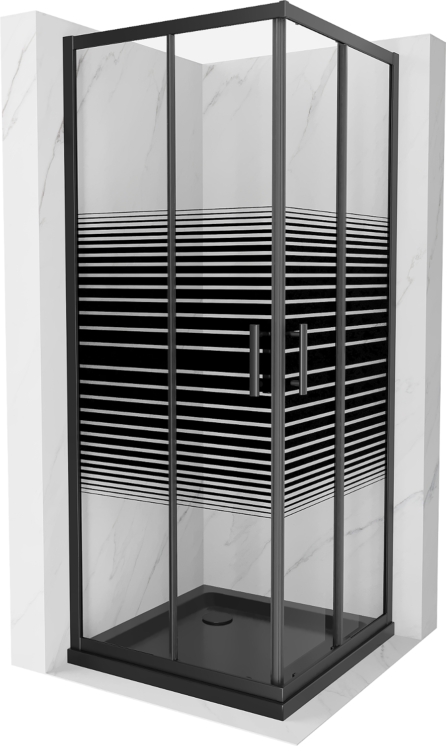 Mexen Rio cabine de douche carrée 90 x 90 cm, bandes noires, noir + receveur plat, noir - 860-090-090-70-20-4070B