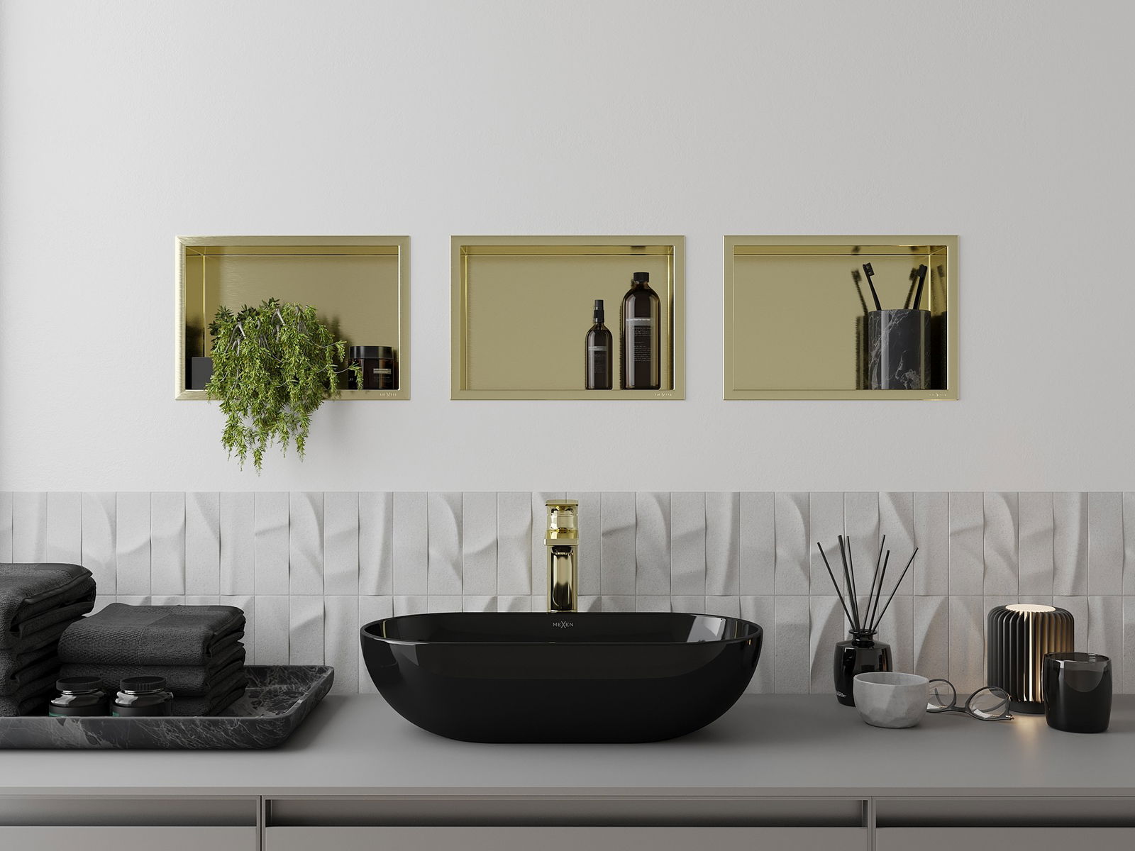 Mexen X-Wall-R étagère murale avec rebord 30 x 20 cm, or brossé - 1950302010
