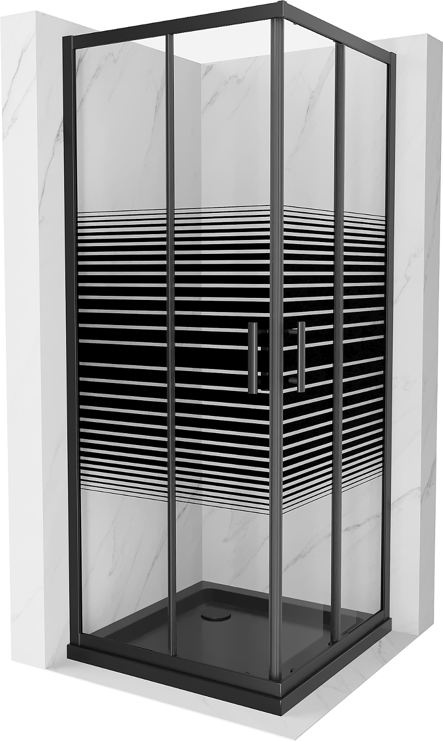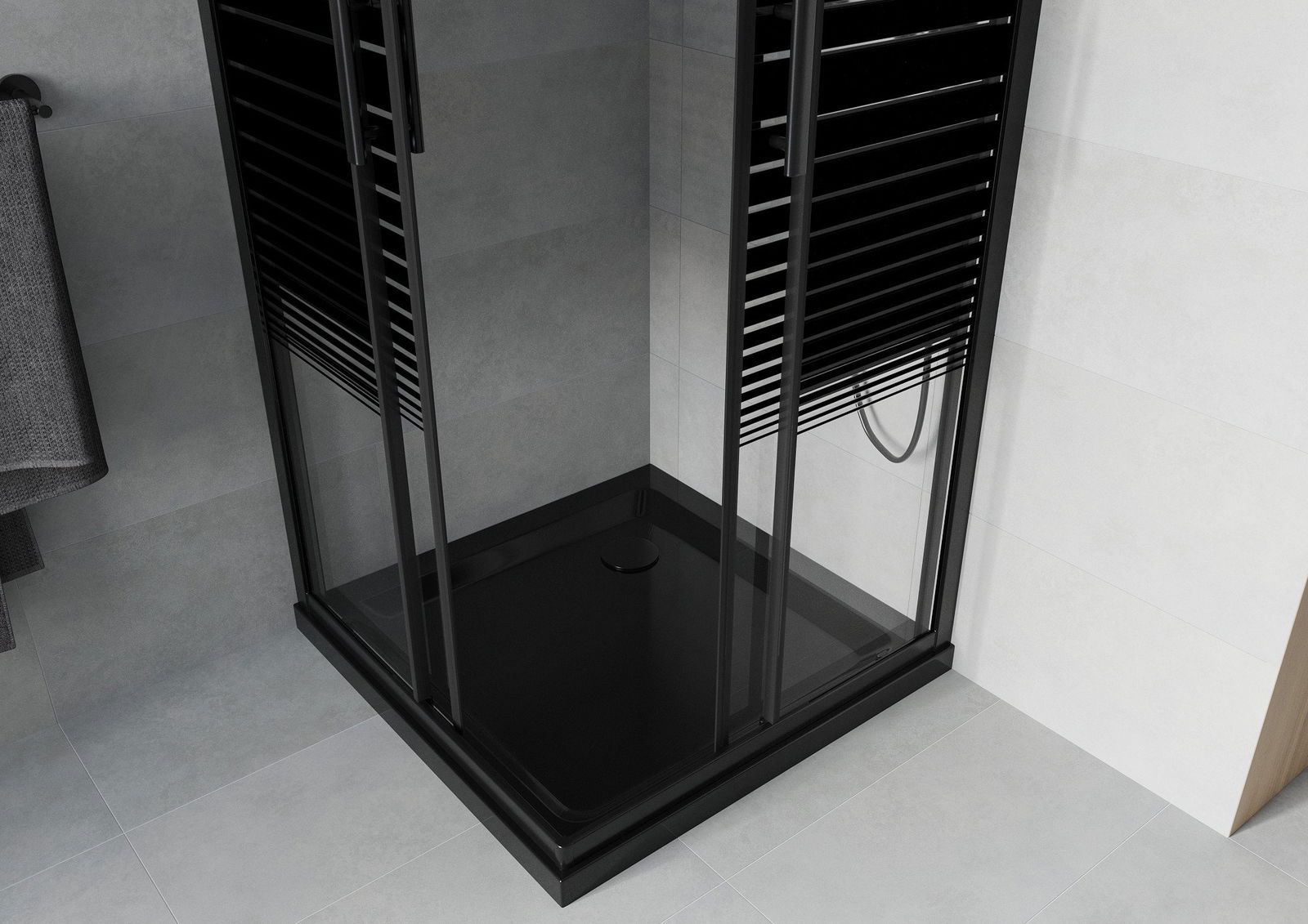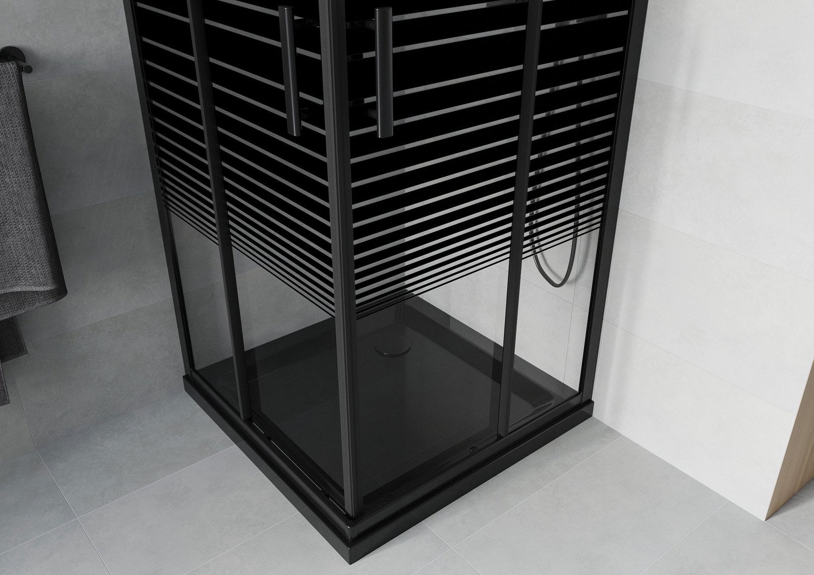 Mexen Rio cabine de douche carrée 70 x 70 cm, bandes noires, noire + receveur Flat, noir - 860-070-070-70-20-4070B
