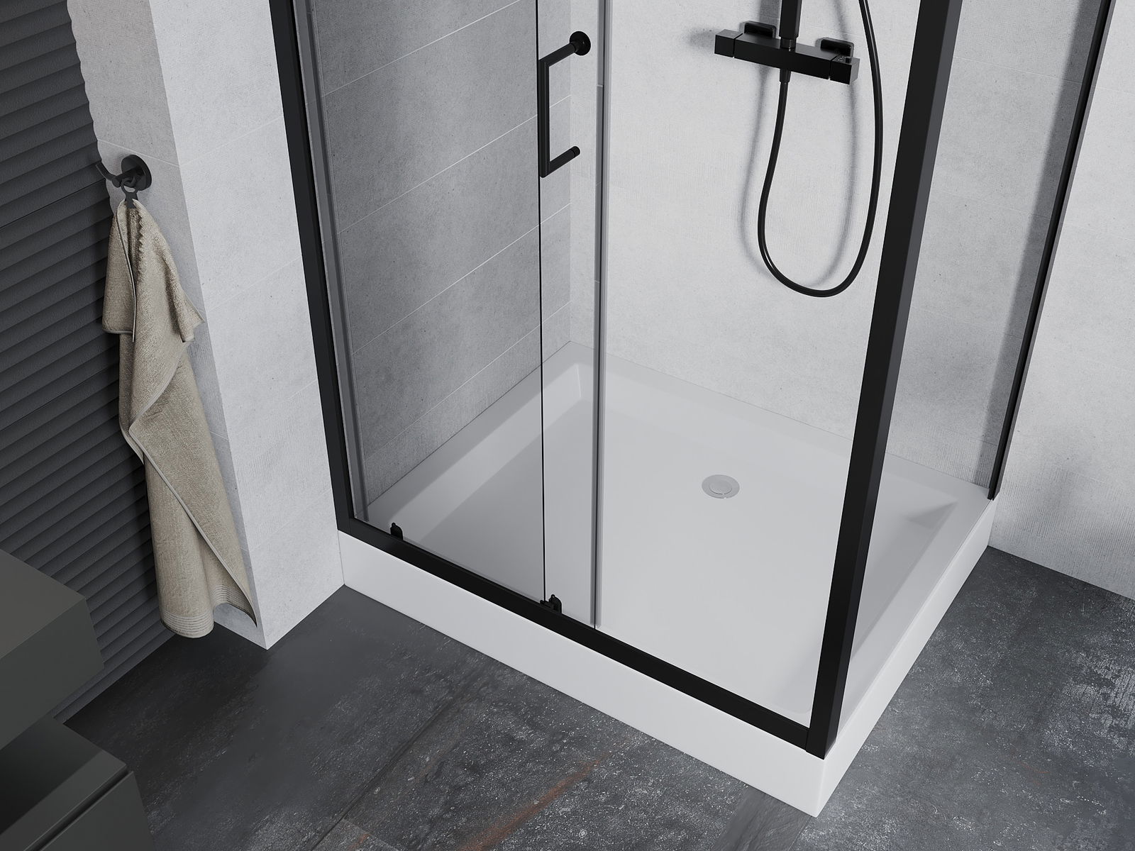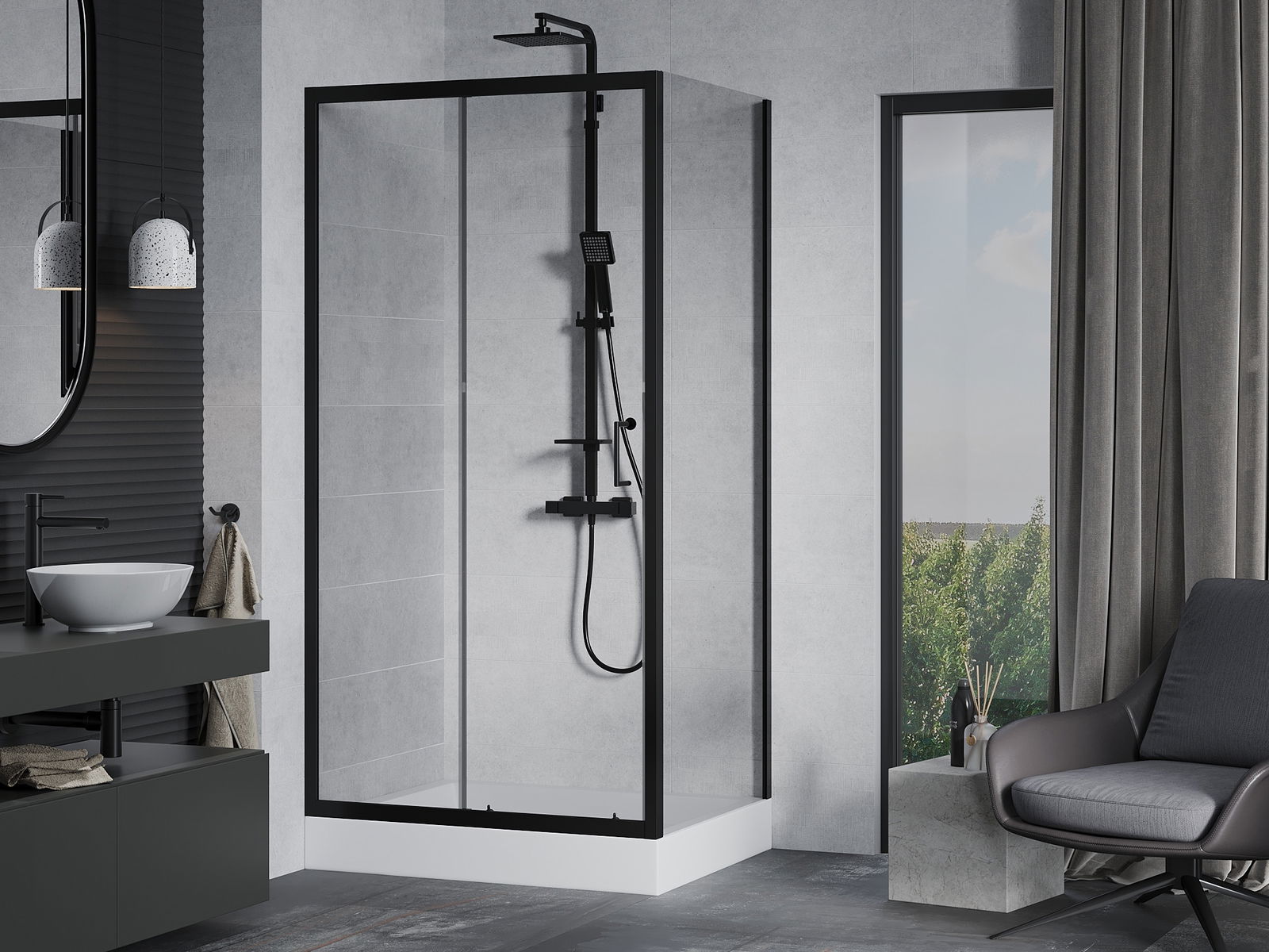 Mexen Apia cabine de douche coulissante 100 x 80 cm, transparente, noire + receveur Rio - 840-100-080-70-00-4510