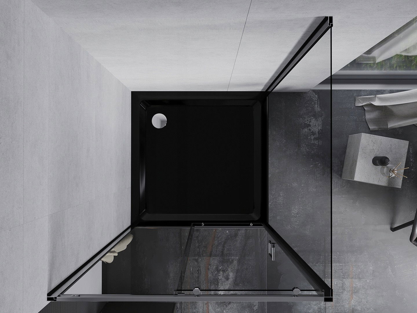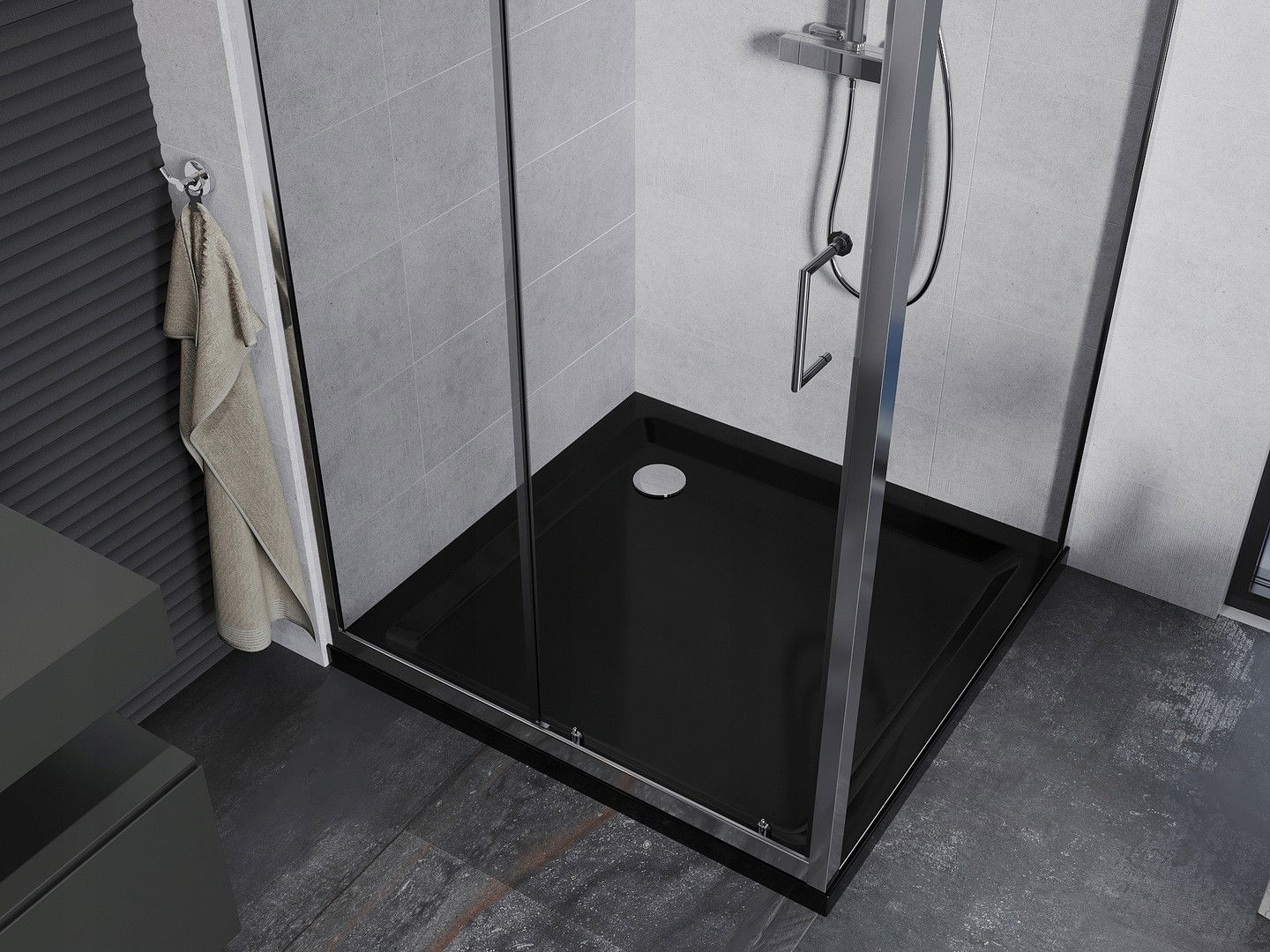 Mexen Apia cabine de douche coulissante 90 x 90 cm, transparent, chrome + receveur Flat, noir - 840-090-090-01-00-4070